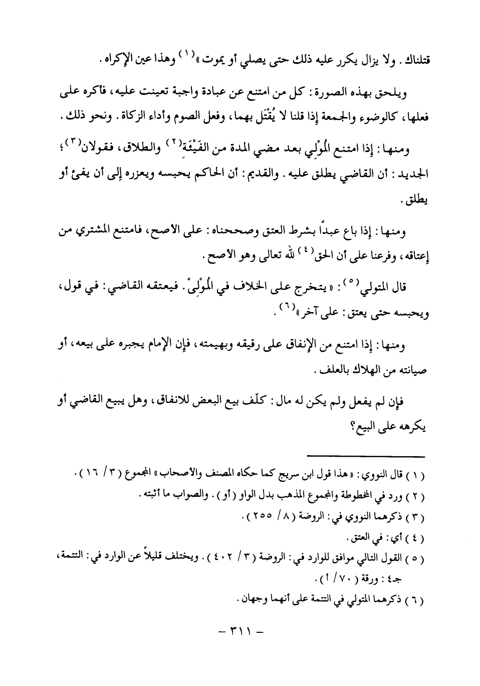 (¬5) القول التالي موافق للوارد في: الروضة (3/ 402). ويختلف قليلًا عن الوارد في: التتمة، 4 جـ: ورقة (1170).