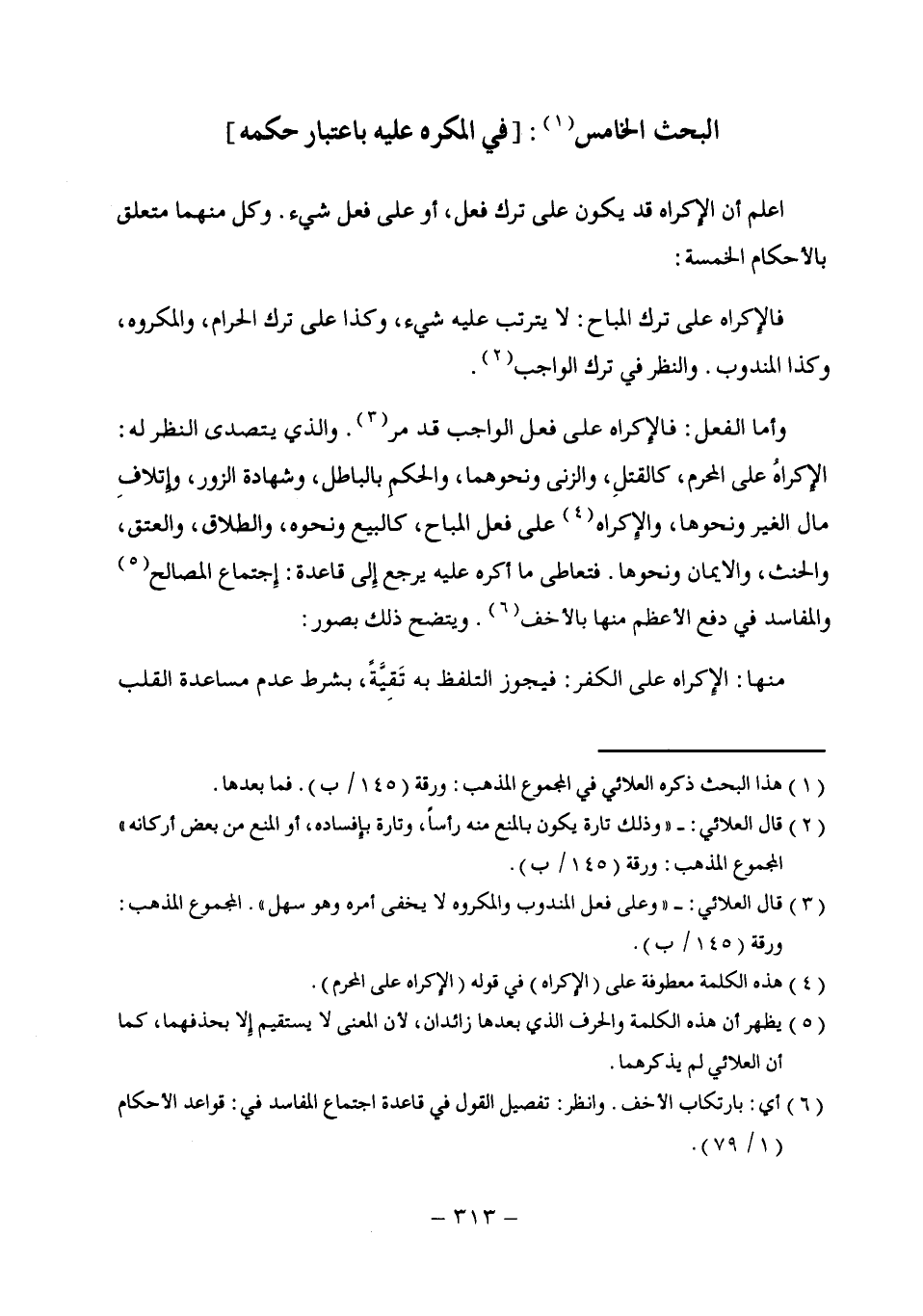 (¬3) قال العلائي: "وعلى فعل المندوب والمكروه لا يخفى أمره وهو سهل". المجموع المذهب: ورقة (145 / ب).