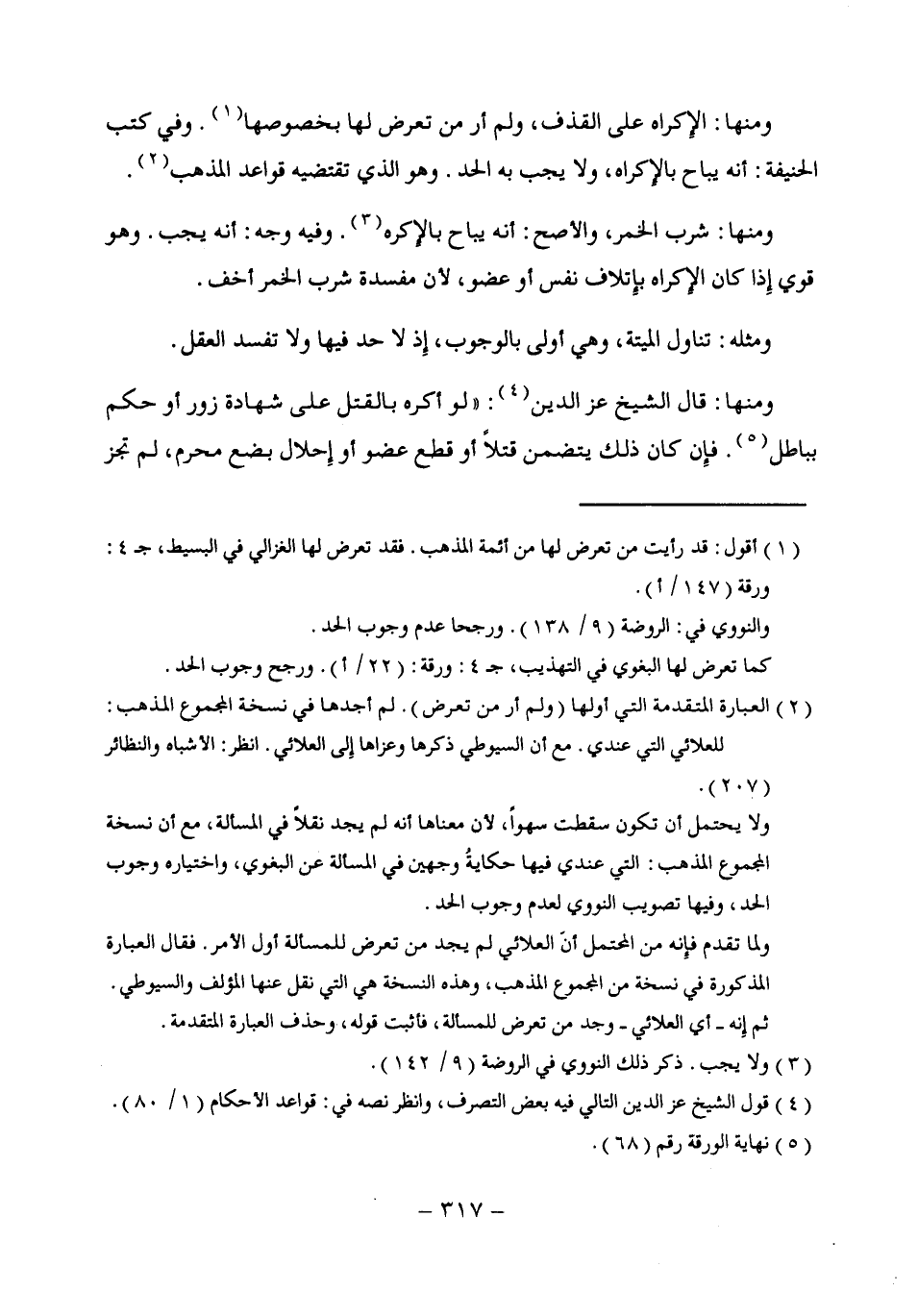 ولما تقدم فإِنه من المحتمل أنّ العلائى لم يجد من تعرض للمسألة أول الأمر. فقال العبارة المذكورة في نسخة من المجموع المذهب، وهذه النسخة هي التي نقل عنها المؤلف والسيوطي.