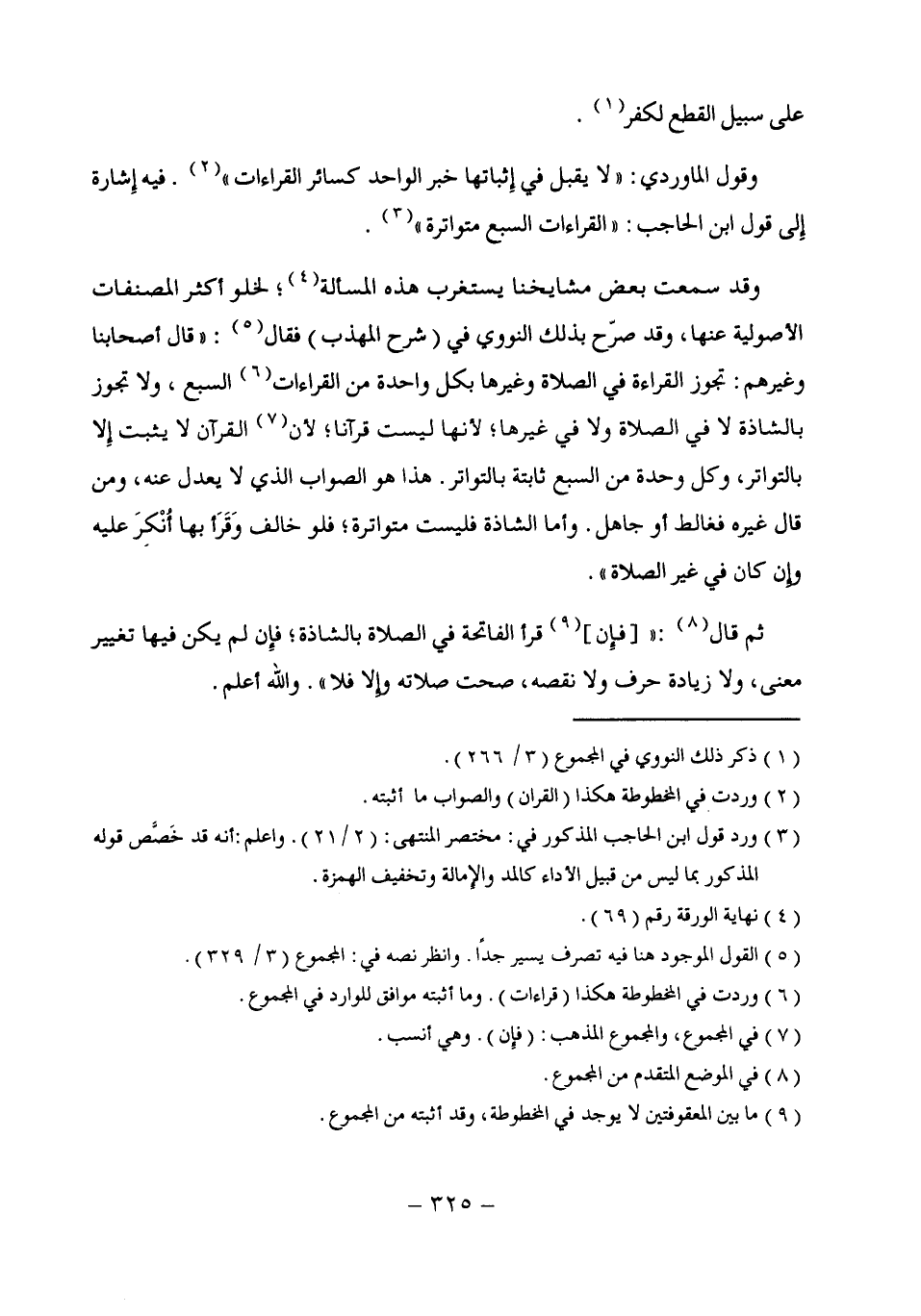 وقول الماوردى: "لا يقبل في إِثباتها خبر الواحد كسائر القراءات" (¬2). فيه إِشارة إِلى قول ابن الحاجب: "القراءات السبع متواترة" (¬3).