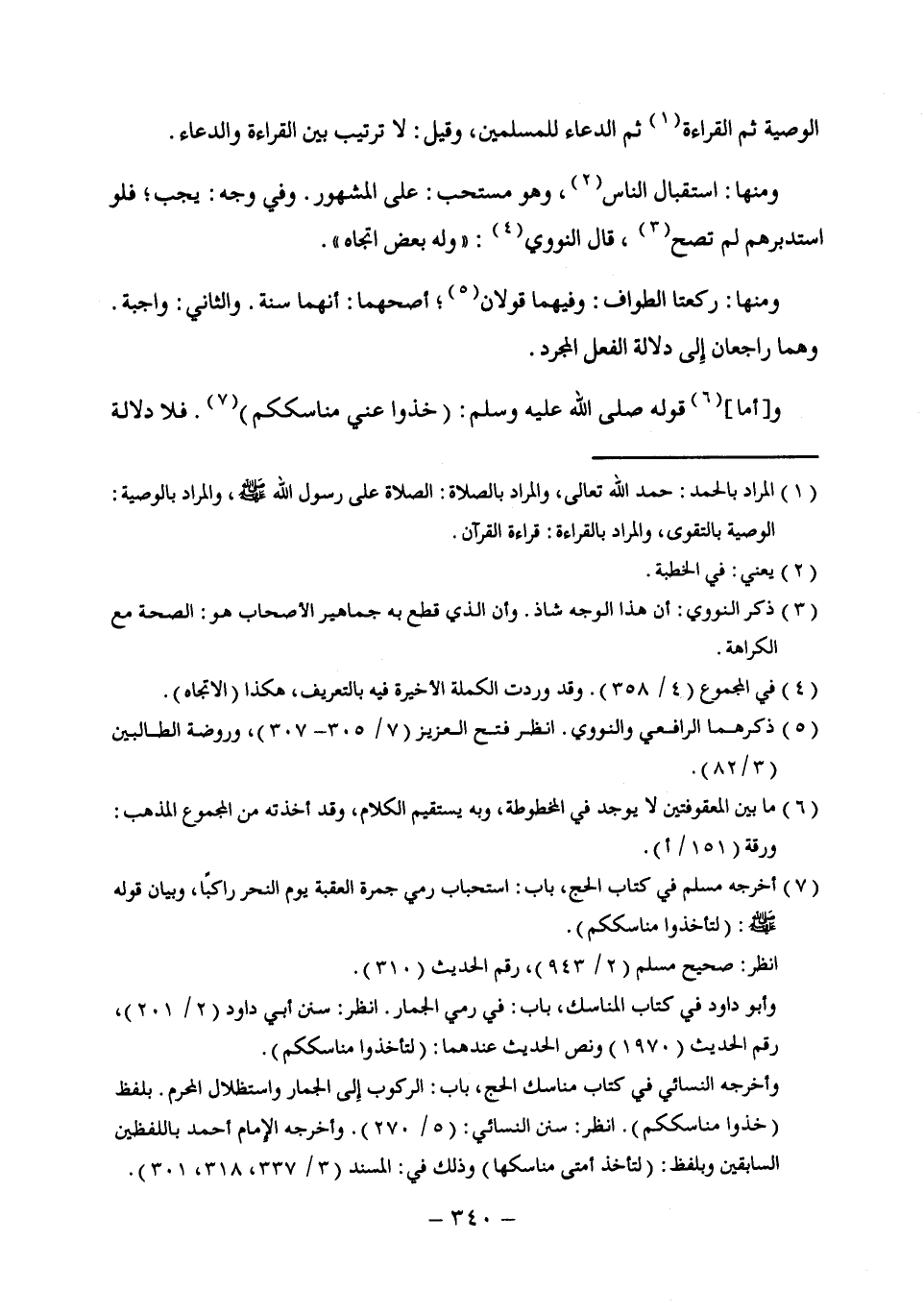 (¬7) أخرجه مسلم في كتاب الحج، باب: استحباب رمي جمرة العقبة يوم النحر راكبًا، وبيان قوله - صلى الله عليه وسلم -: (لتأخذوا مناسككم).