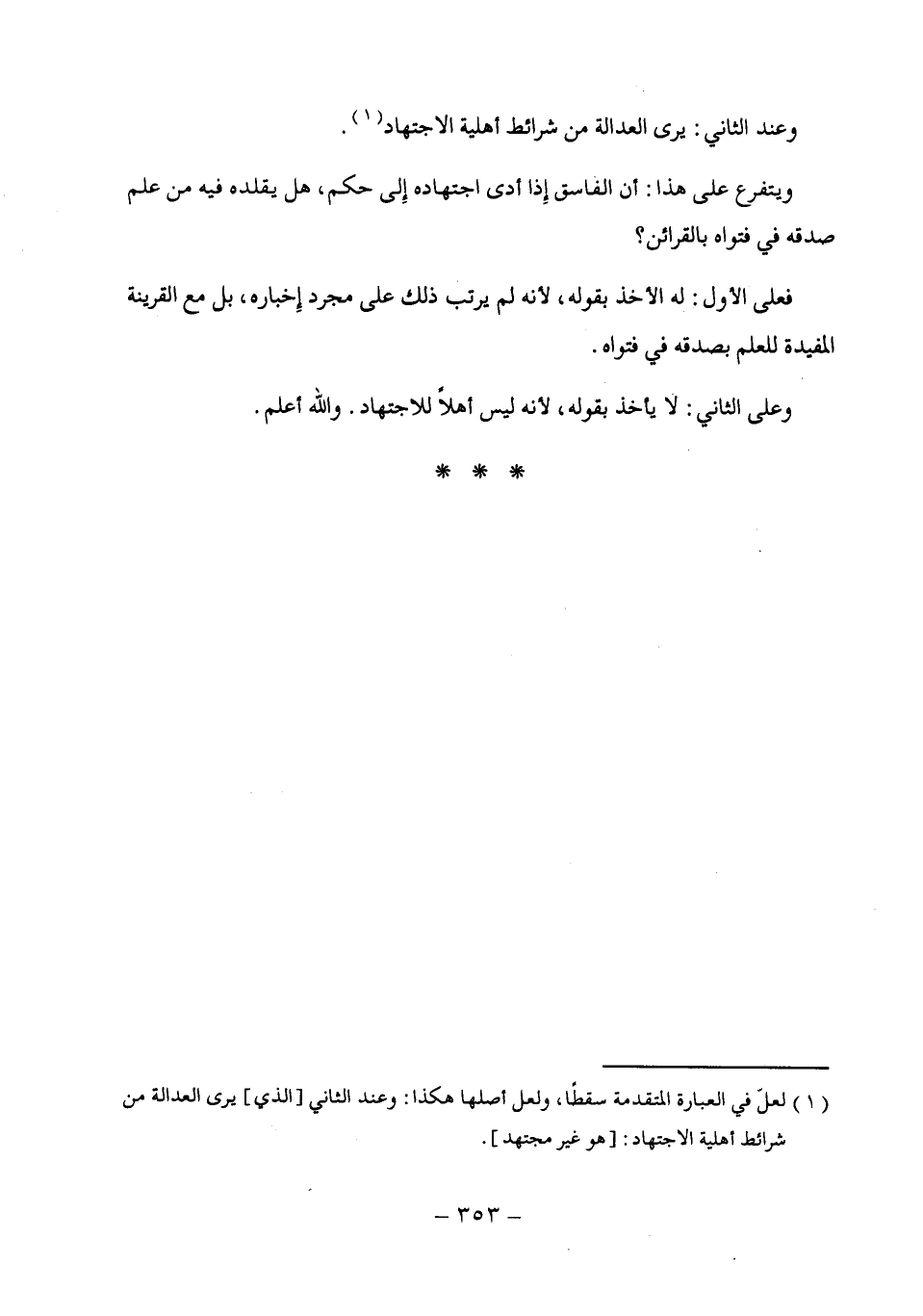 (¬1) لعلّ في العبارة المتقدمة سقطًا، ولحل أصلها هكذا: وعند الثاني [الذي] يرى العدالة من شرائط أهلية الاجتهاد: [هو غير مجتهد].
