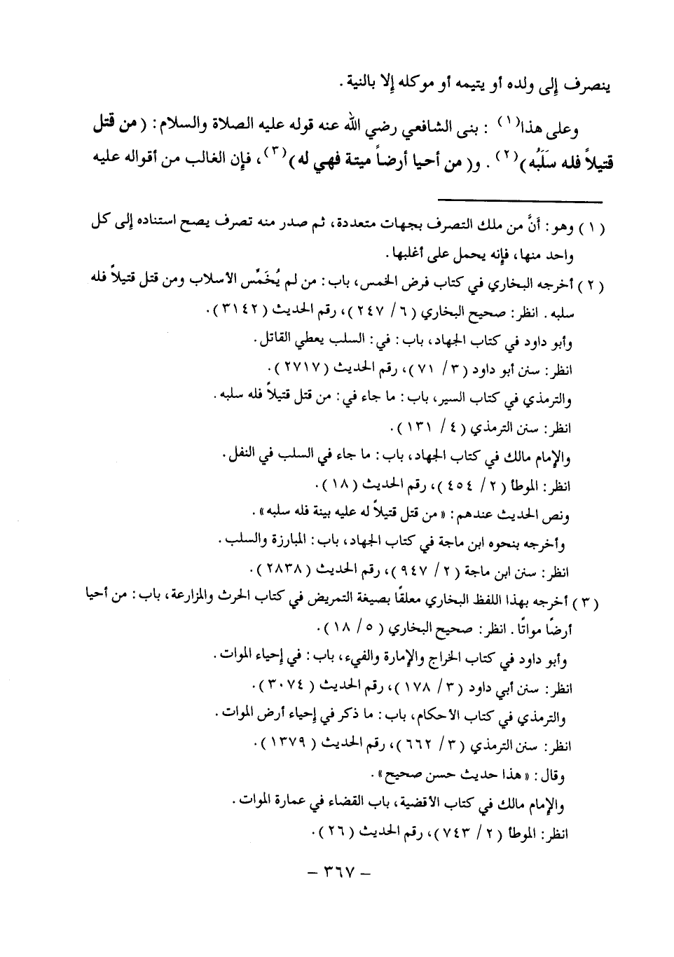 (¬2) أخرجه البخارى في كتاب فرض الخمس، باب: من لم يُخَمس الأسلاب ومن قتل قتيلاً فله سلبه. انظر: صحيح البخارى (6/ 247)، رقم الحديث (3142).