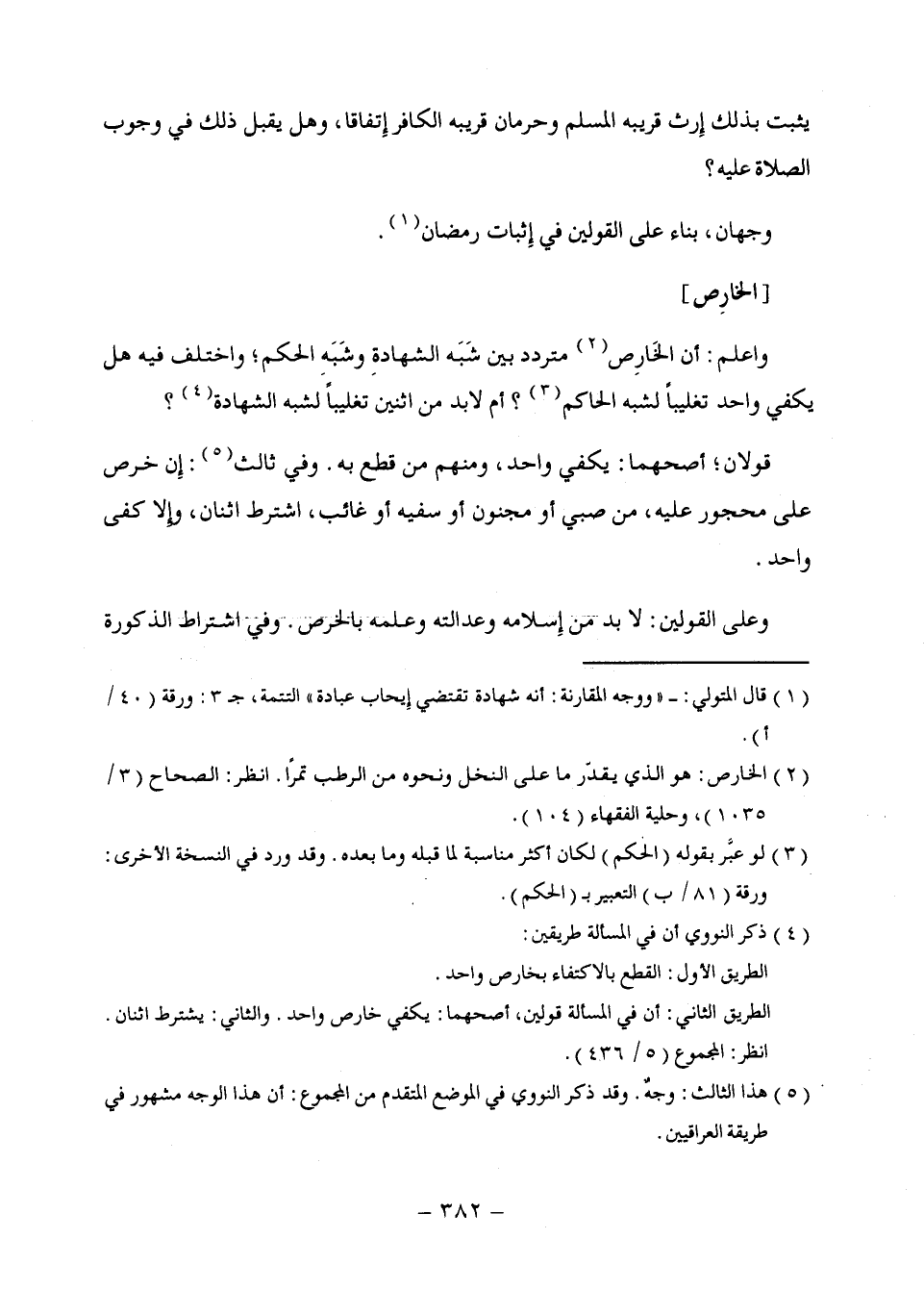 واعلم: أن الخَارِص (¬2) متردد بين شَبَه الشهادةِ وشَبَهِ الحكم، واختلف فيه هل يكفي واحد تغليباً لشبه الحاكم (¬3)؟ أم لابد من اثنين تغليباً لشبه الشهادة (¬4)؟