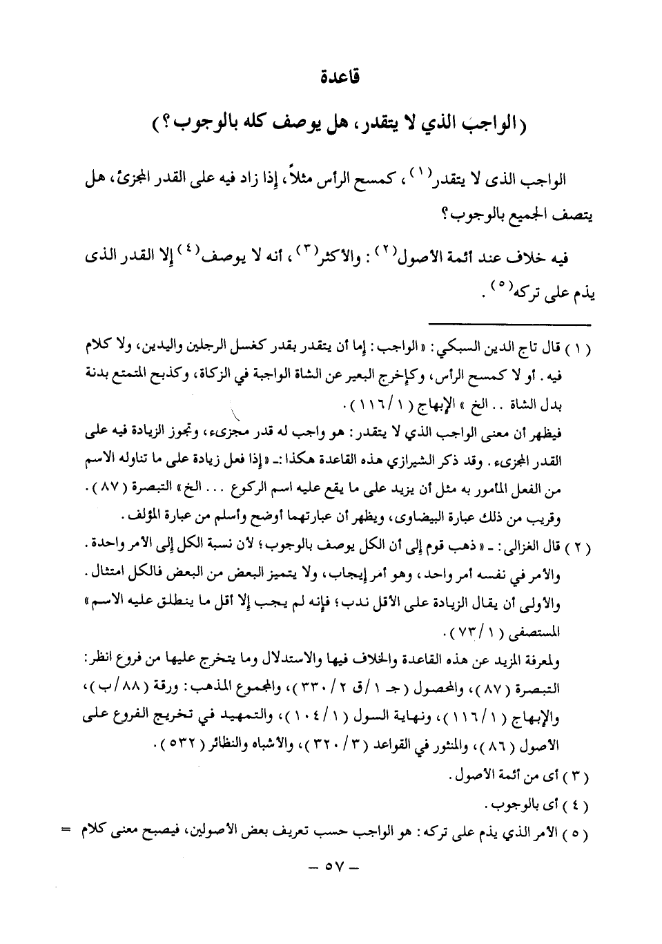 قاعدة (الواجبَ الذي لا يتقدر، هل يوصف كله بالوجوب؟)