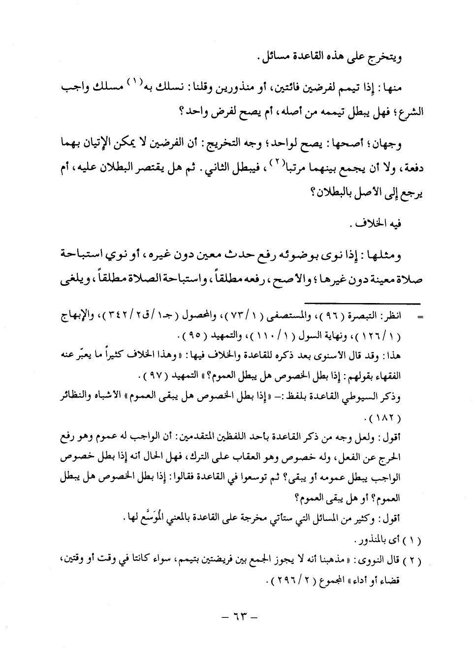 هذا: وقد قال الأسنوى بعد ذكره للقاعدة والخلاف فيها؟ "وهذا الخلاف كثيراً ما يعبّر عنه الفقهاء بقولهم: إذا بطل الخصوص هل يبطل العموم؟ " التمهيد (97).