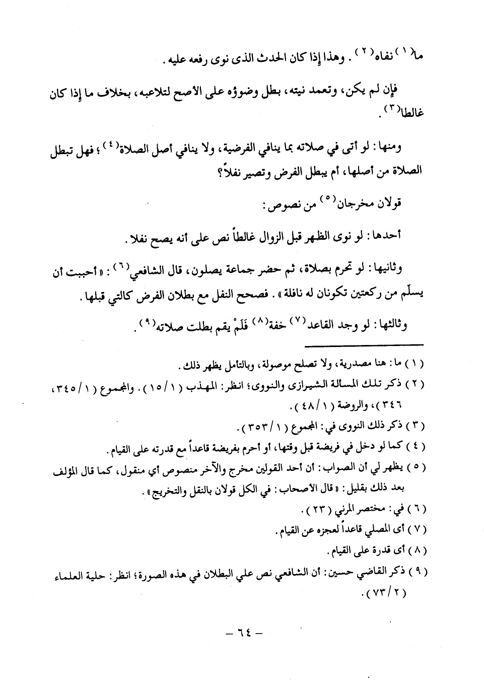 (¬2) ذكر تلك المسألة الشيرازى والنووى، انظر: المهذب (15/ 1). والمجموع (1/ 345، 346)، والروضة (48/ 1).