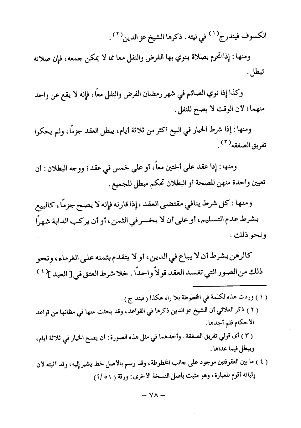 (¬2) ذكر العلائي أن الشيخ عز الدين ذكرها في القواعد، وقد بحثت عنها في مظانها من قواعد الأحكام فلم أجدها.
