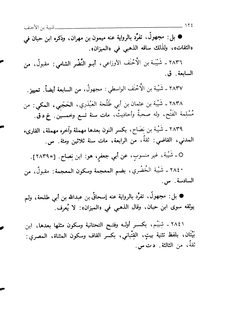 2837 - شَيْبة بن الأحْنَف الواسطي: مجهولٌ، من السابعة أيضًا. تمييز.