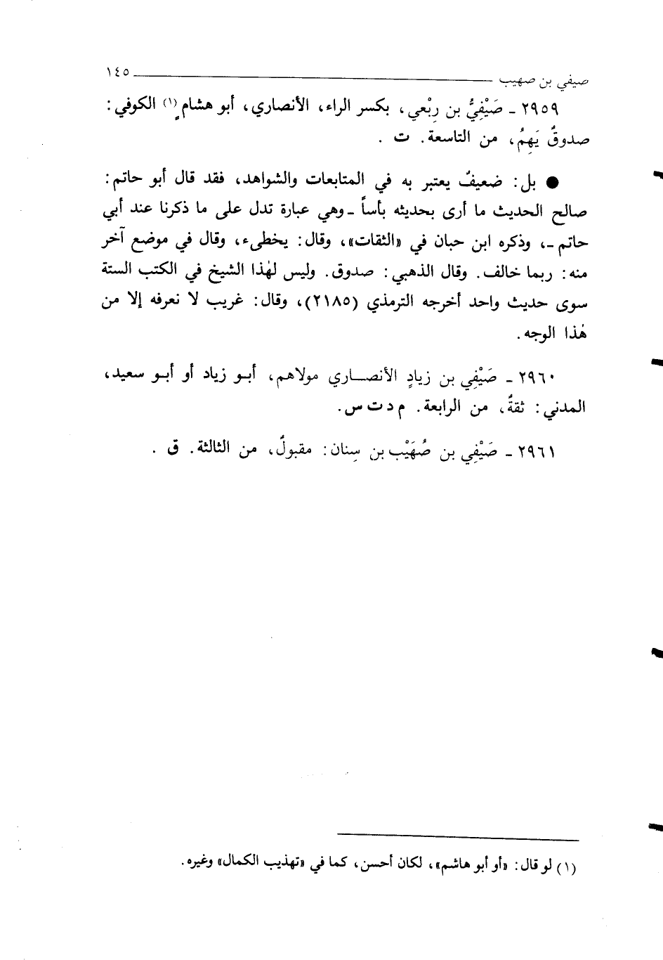 2960 - صَيْفِي بن زيادٍ الأنصاري مولاهم، أبو زياد أو أبو سعيد، المدني: ثقةٌ، من الرابعة. م د ت س.