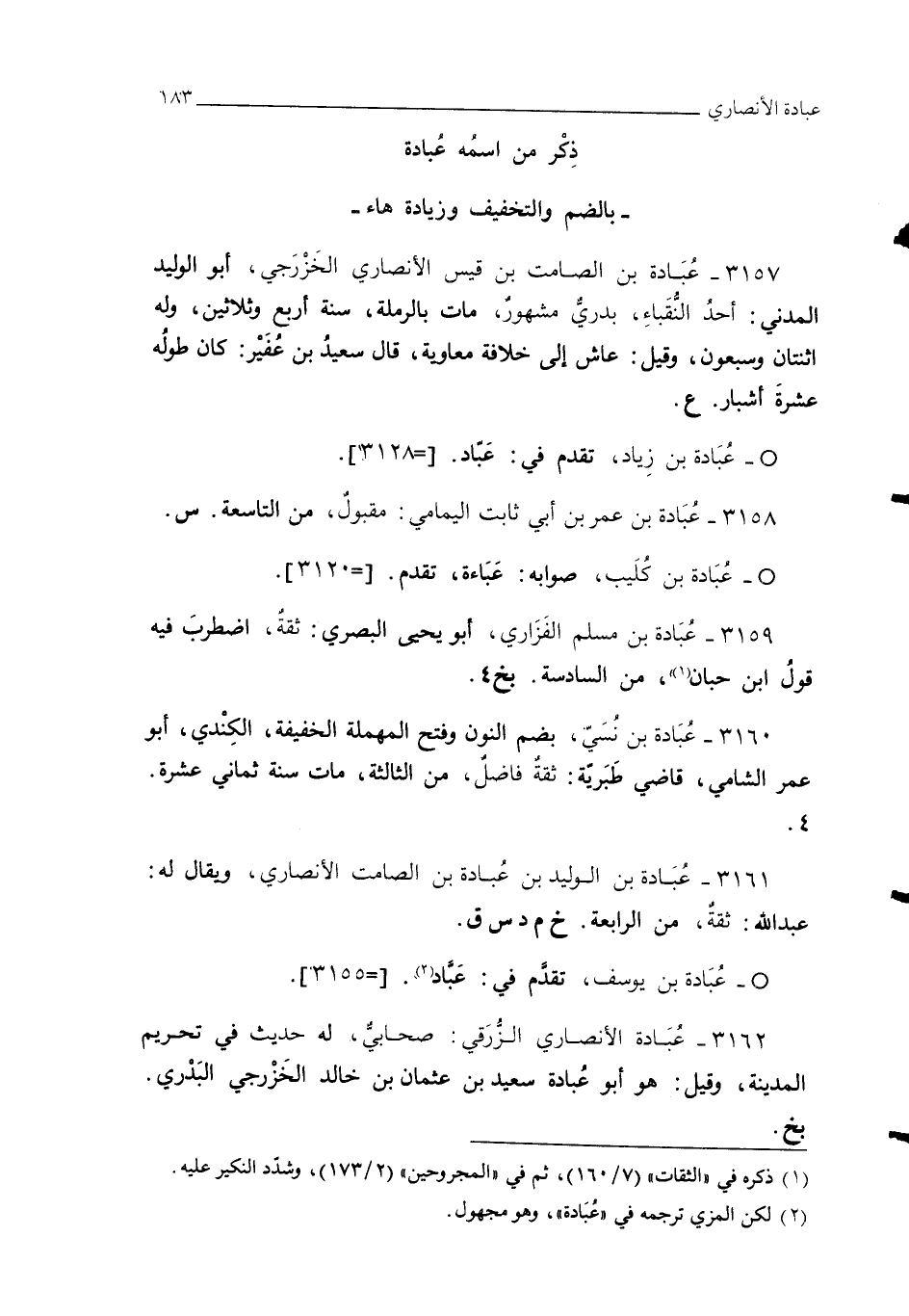 3161 - عُبَادة بن الوليد بن عُبادة بن الصامت الأنصاري، ويقال له: عبد الله: ثقة، من الرابعة. خ م د س ق.