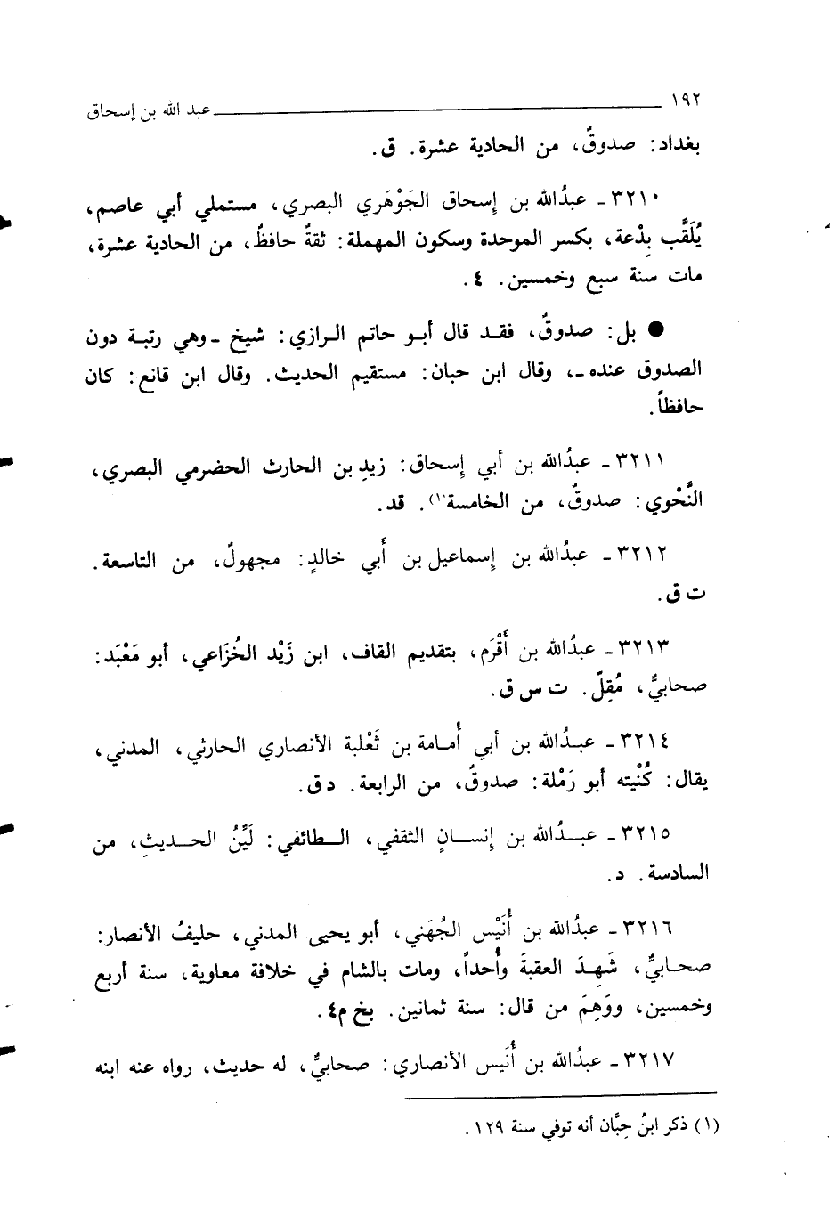 3211 - عبد الله بن أبي إِسحاق: زيد بن الحارث الحضرمي البصري، النحْوي: صدوق، من الخامسة (¬1). قد.