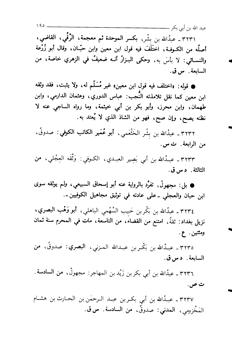 3233 - عبدُ الله بن أبي بَصير العبدي، الكوفي: وَثَّقَه العِجْلي، من الثالثة. د س ق.