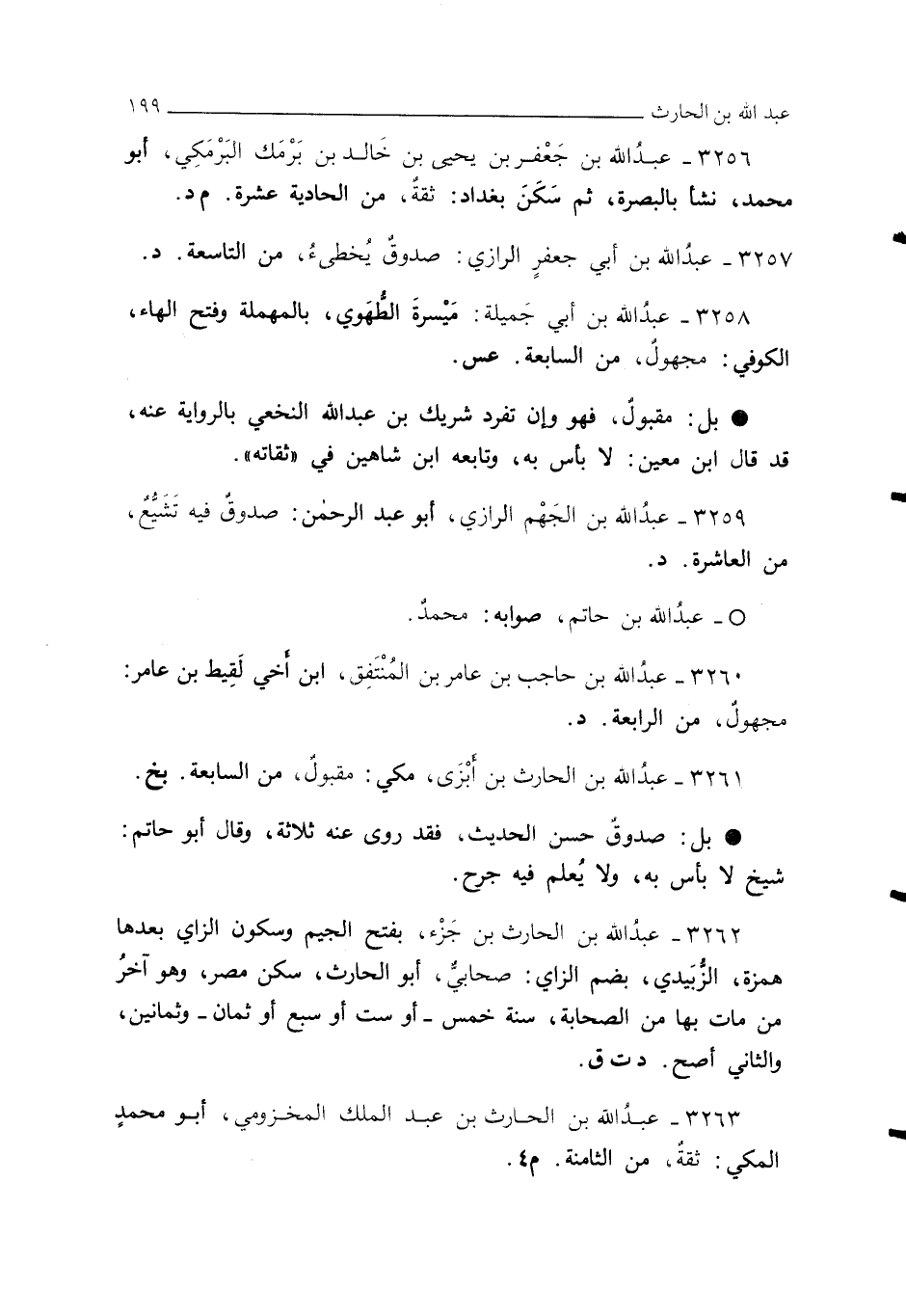 3256 - عبد الله بن جَعْفر بن يحيى بن خَالد بن بَرْمَك البَرْمَكِي، أبو محمد، نشأ بالبصرة، ثم سكَن بغداد: ثقةٌ، من الحادية عشرة. م د.
