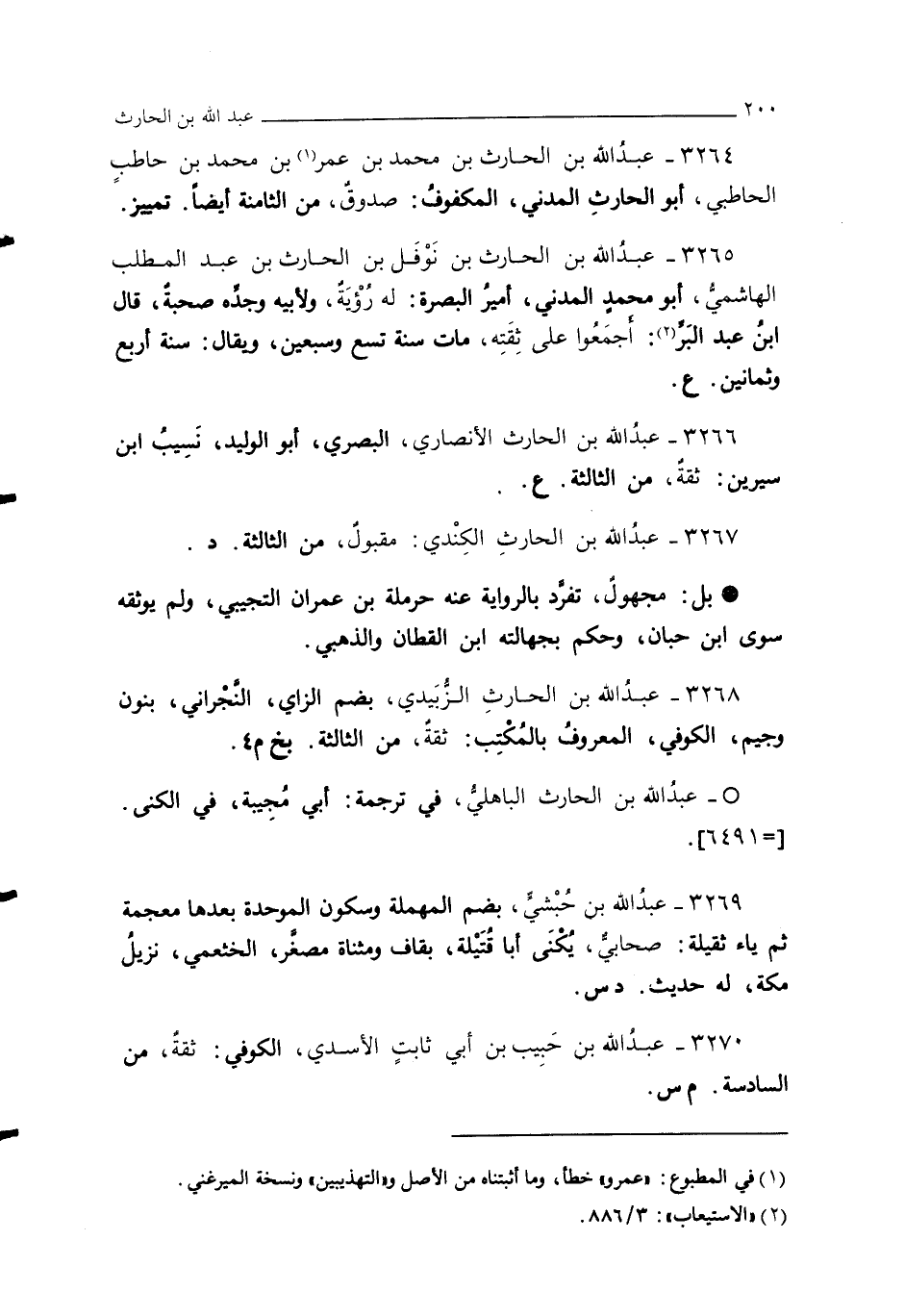 3268 - عبدُ الله بن الحارثِ الزُّبَيدي، بضم الزاي، النجْراني، بنون وجيم، الكوفي، المعروفُ بالمُكْتب: ثقة، من الثالثة. بخ م 4.