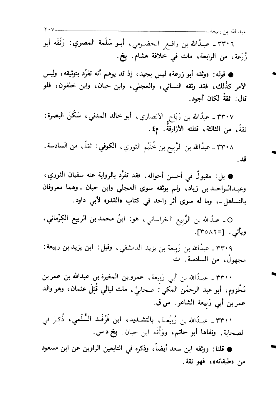 3308 - عبدُ الله بن الرَّبِيع بن خُثَيْم الثوري، الكوفي: ثقةٌ، من السادسة. قد.