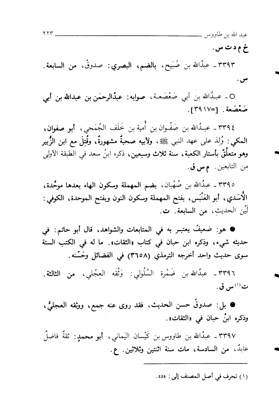 3393 - عبدُ الله بن صُبَيح، بالضم، البصري: صدوقٌ، من السابعة. س.