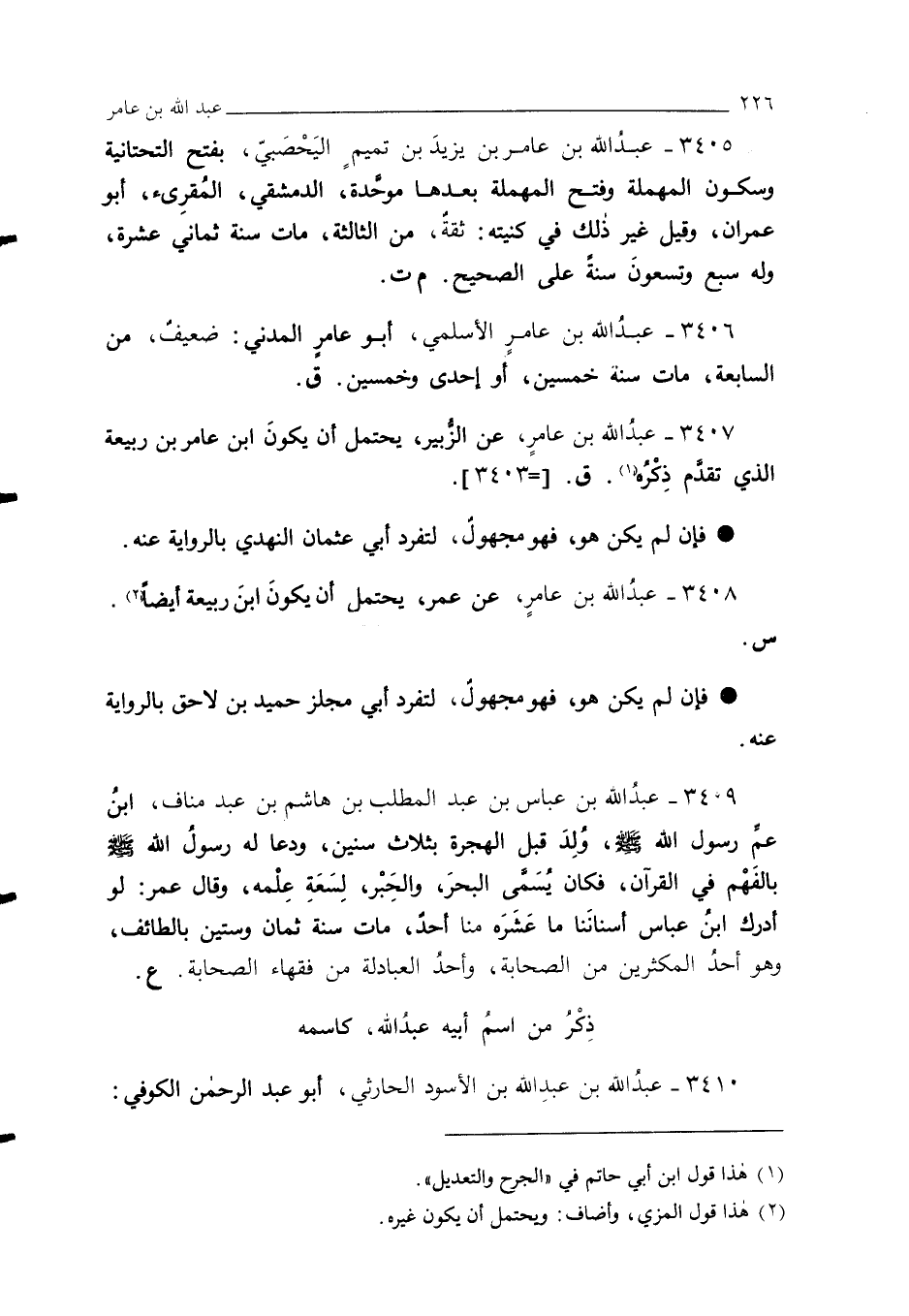 3407 - عبدُ الله بن عامرٍ، عن الزُّبير، يحتمل أن يكونَ ابن عامر بن ربيعة الذي تقدَّم ذِكْرُه (¬1). ق. [= 3403].
