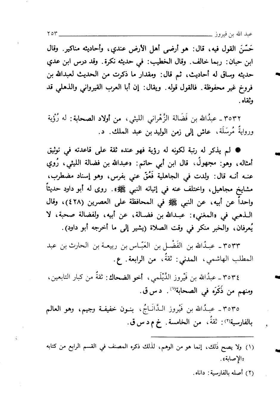 3534 - عبدُ الله بن فَيْروز الدَّيْلَمي، أخو الضحاك: ثقةٌ من كبار التابعين، ومنهم من ذَكَرَه في الصحابة (¬1). د س ق.
