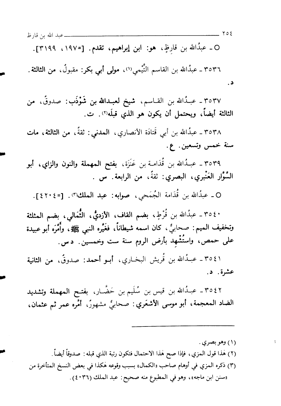 3537 - عبدُ الله بن القاسم، شيخ لعبد الله بن شَوْذَب: صدوق، من الثالثة أيضًا، ويحتمل أن يكون هو الذي قبلَه (¬2). ت.