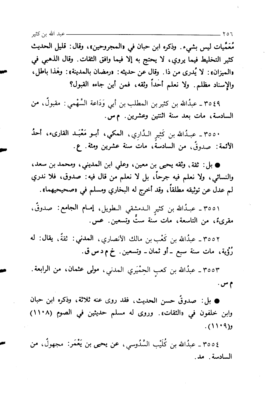 3549 - عبدُ الله بن كثير بن المطلب بن أبي وَدَاعة السَّهْمي: مقبول، من السادسة، مات بعد سنة اثنتين وعشرين. م س.