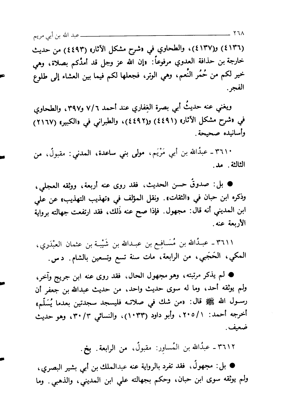 3612 - عبدُ الله بن المُساوِر: مقبولٌ، من الرابعة. بخ.