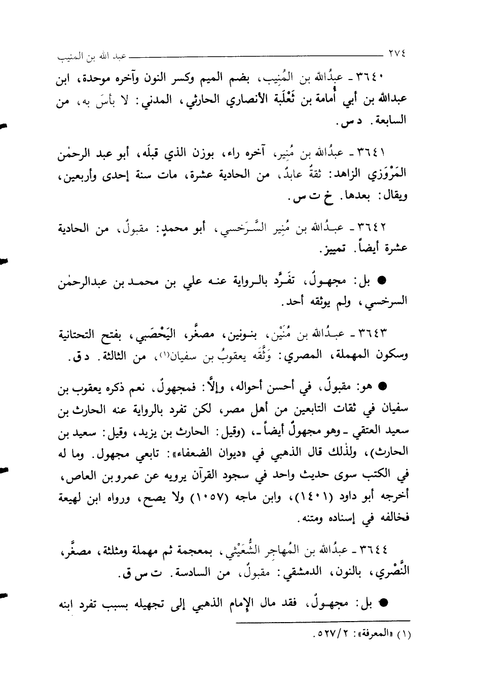 3642 - عبدُ الله بن مُنِير السَّرَخسي، أبو محمدٍ: مقبولٌ، من الحادية عشرة أيضًا. تمييز.