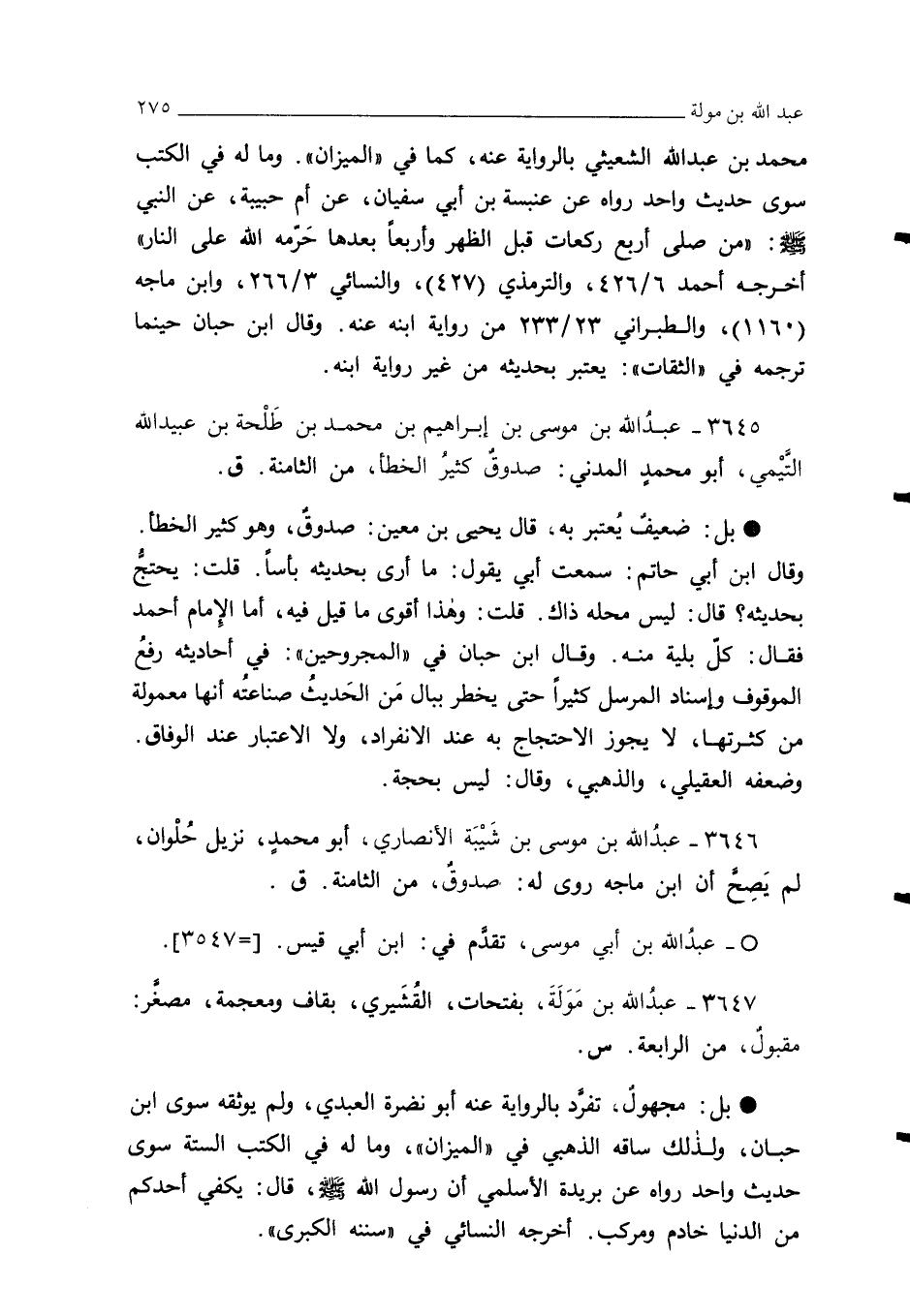 3645 - عبدُ الله بن موسى بن إبراهيم بن محمد بن طَلْحة بن عبيد الله التَّيْمي، أبو محمدٍ المدني: صدوقٌ كثيرُ الخطأ، من الثامنة. ق.