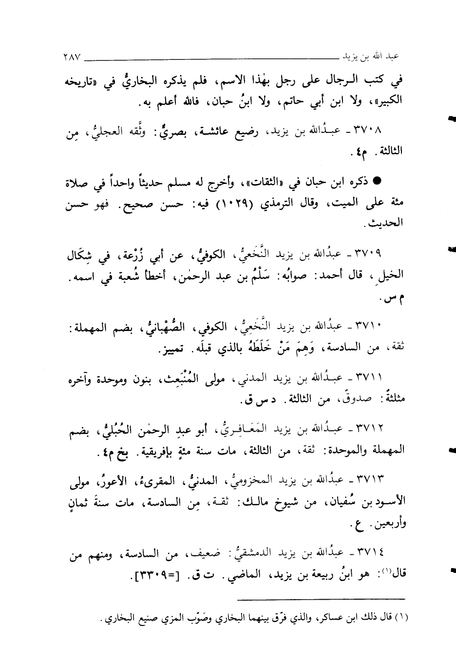 3710 - عبدُ الله بن يزيد النخَعِي، الكوفي، الصهْباني، بضم المهملة: ثقة، من السادسة، وَهِمَ مَنْ خَلَطَه بالذي قبلَه. تمييز.