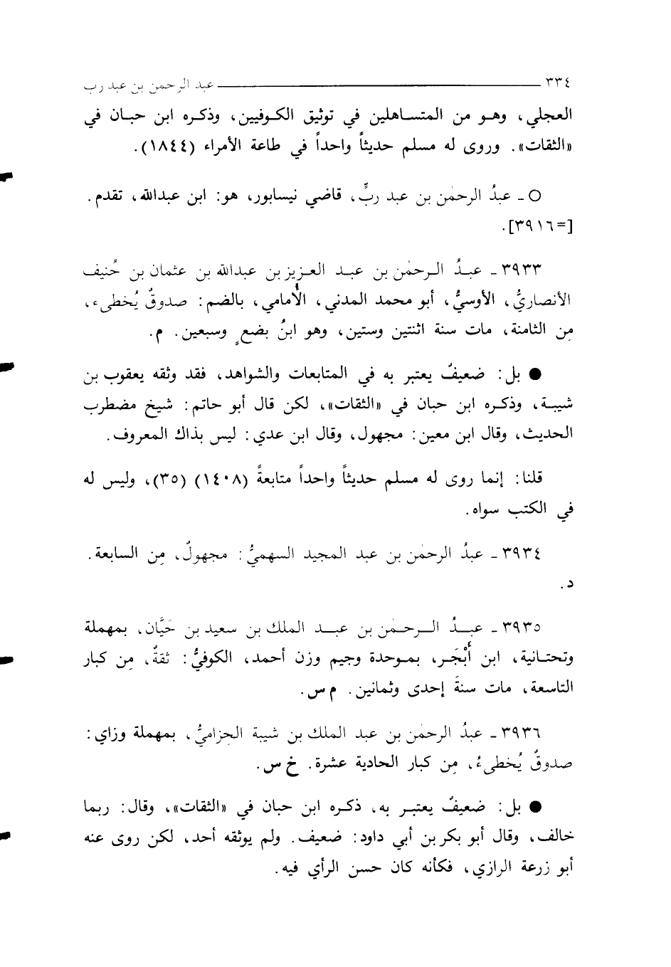 3934 - عبدُ الرحمن بن عبد المجيد السهميُّ: مجهولٌ، مِن السابعة. د.