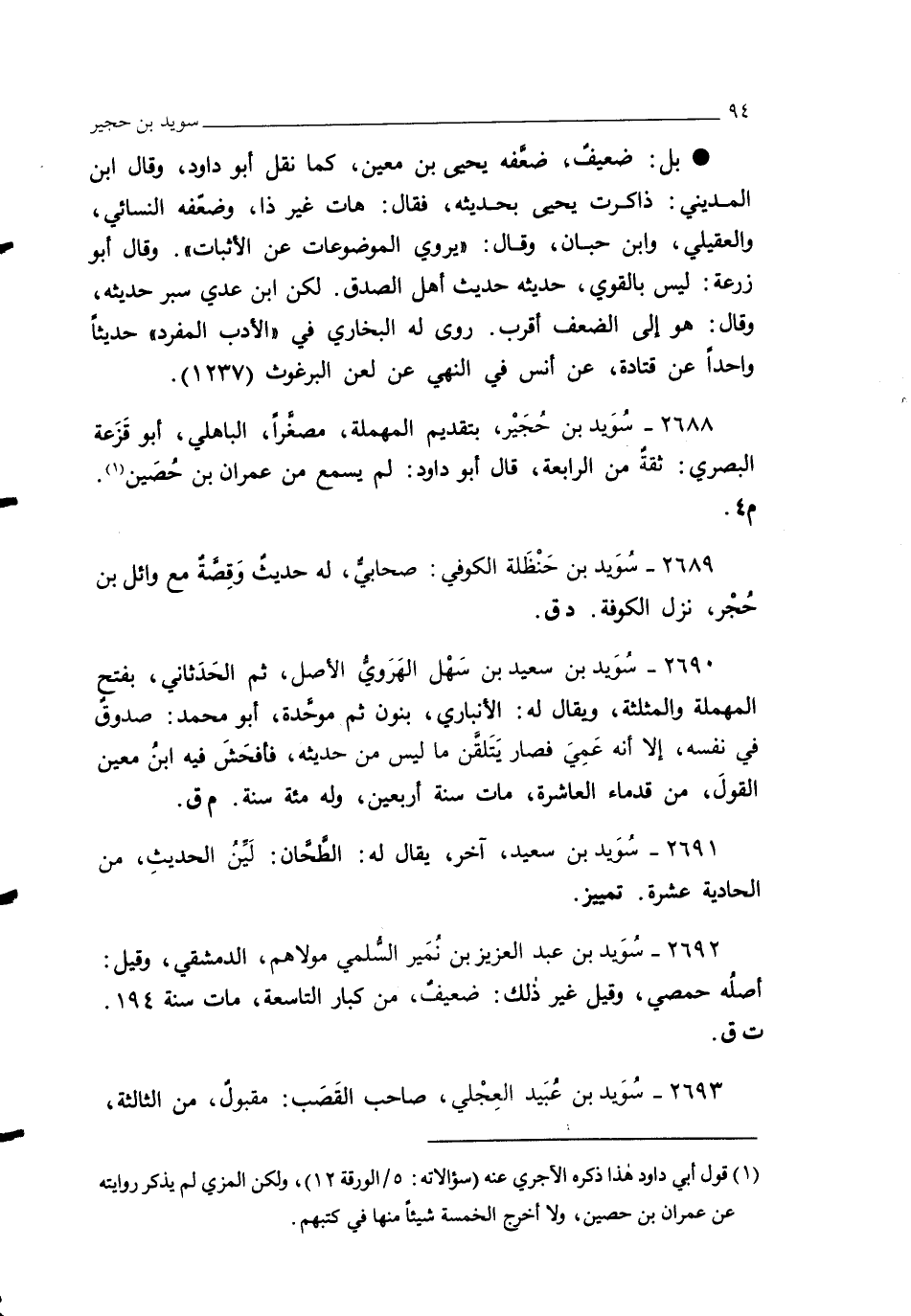 2689 - سُوَيد بن حَنْظَلة الكوفي: صحابيٌّ، له حديثٌ وَقِصَّةٌ مع وائل بن حُجْر، نزل الكوفة. د ق.