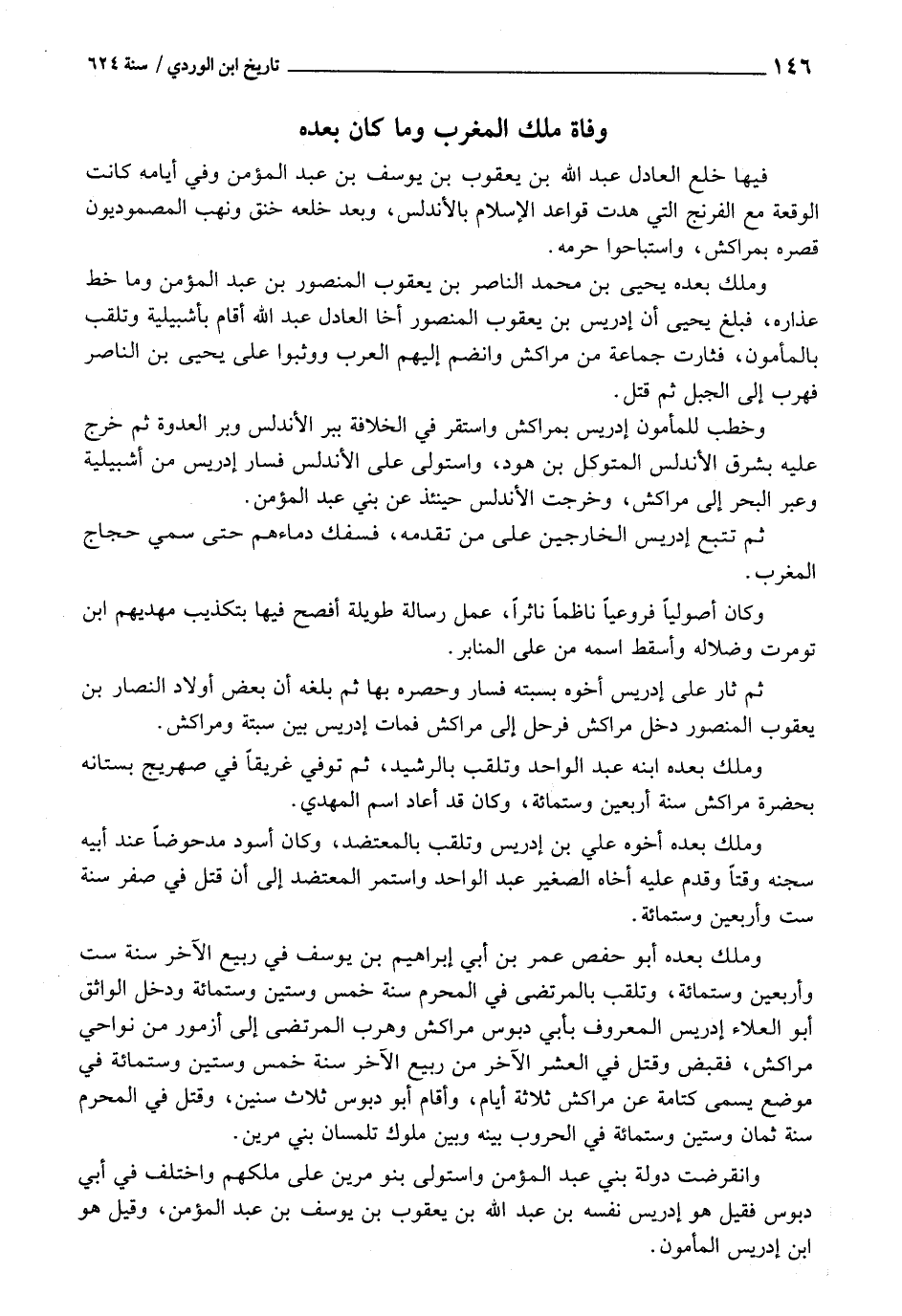فِيهَا خلع الْعَادِل عبد الله بن يَعْقُوب بن يُوسُف بن عبد الْمُؤمن وَفِي أَيَّامه كَانَت الْوَقْعَة مَعَ الفرنج الَّتِي هدت قَوَاعِد الْإِسْلَام بالأندلس، وَبعد خلعه خنق وَنهب المصموديون قصره بمراكش، واستباحوا حرمه.
