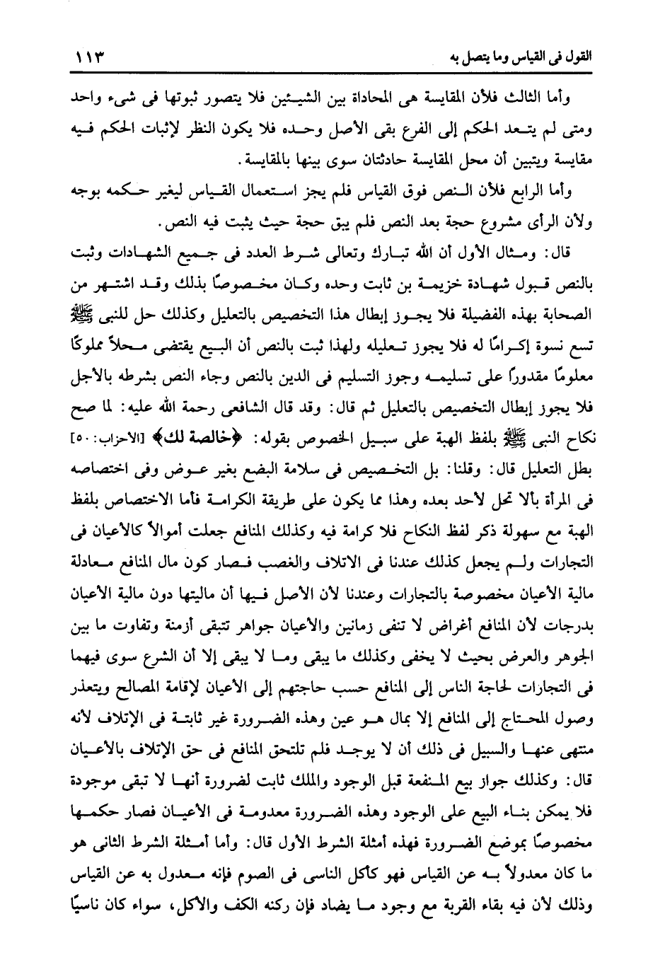 وأما الثالث فلأن المقايسة هى المحاداة بين الشيئين فلا يتصور ثبوتها في شئ واحد ومتى لم يتعد الحكم إلى الفرع بقى الأصل وحده فلا يكون النظر لإثبات الحكم فيه مقايسة ويتبين أن محل المقايسة حادثتان سوى بينهما بالمقايسة.