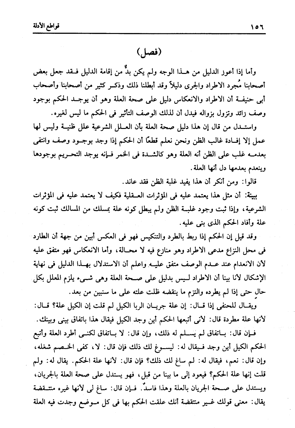ببينة: أن مثل هذا يعتمد عليه في المؤثرات العقلية فكيف لا يعتمد عليه في المؤثرات الشرعية وإذا ثبت وجود غلبة الظن ولم يبطل كونه علة بمسلك من المسالك ثبت كونه علة وافاد الحكم الذى بنى عليه.
