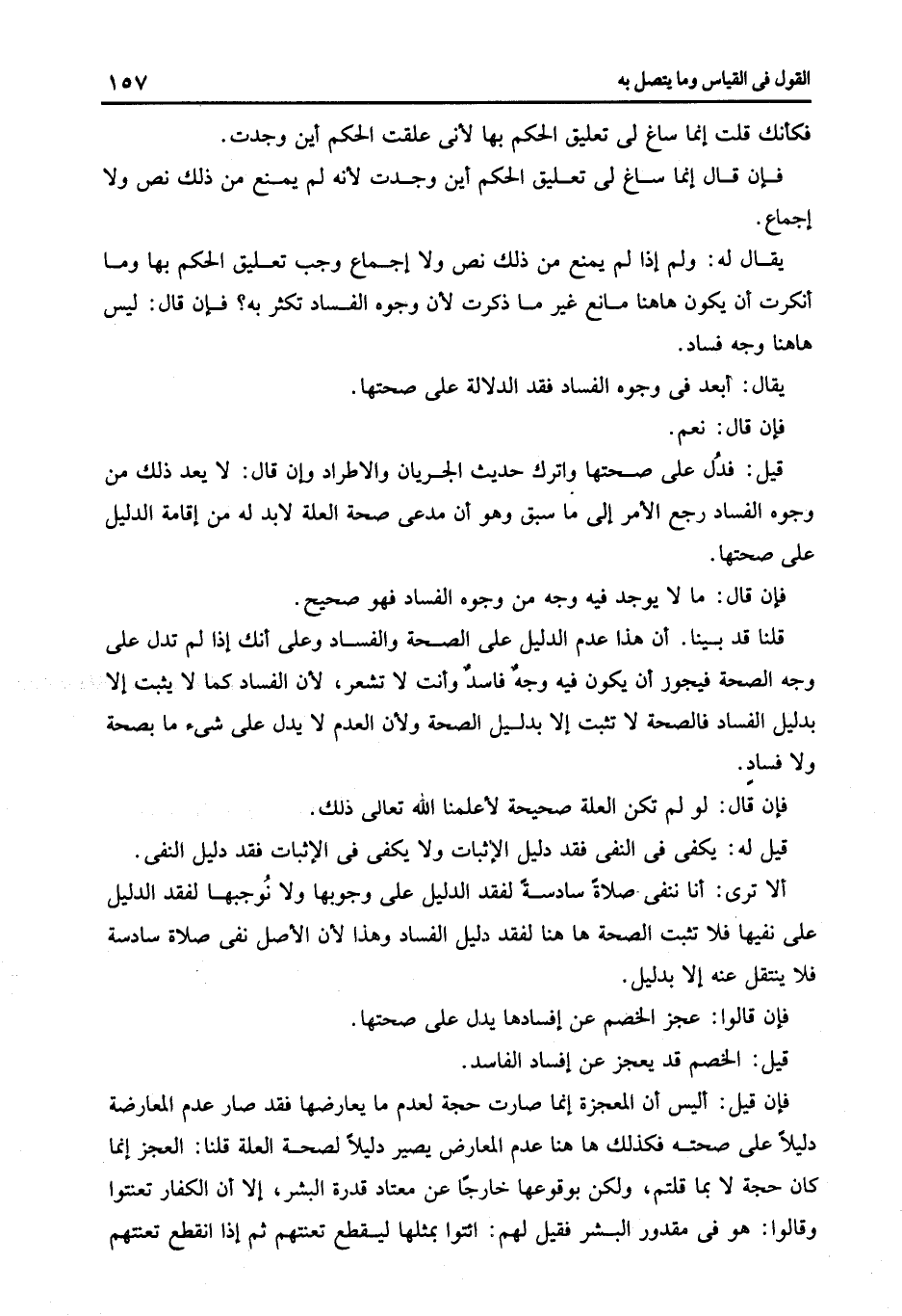 قيل: فدل على صحتها واترك حديث الجريان والاطراد وإن قال: لا يعد ذلك من وجوه الفساد رجع الأمر إلى ما سبق وهو أن مدعى صحة العلة لابد له من إقامة الديل على صحتها.