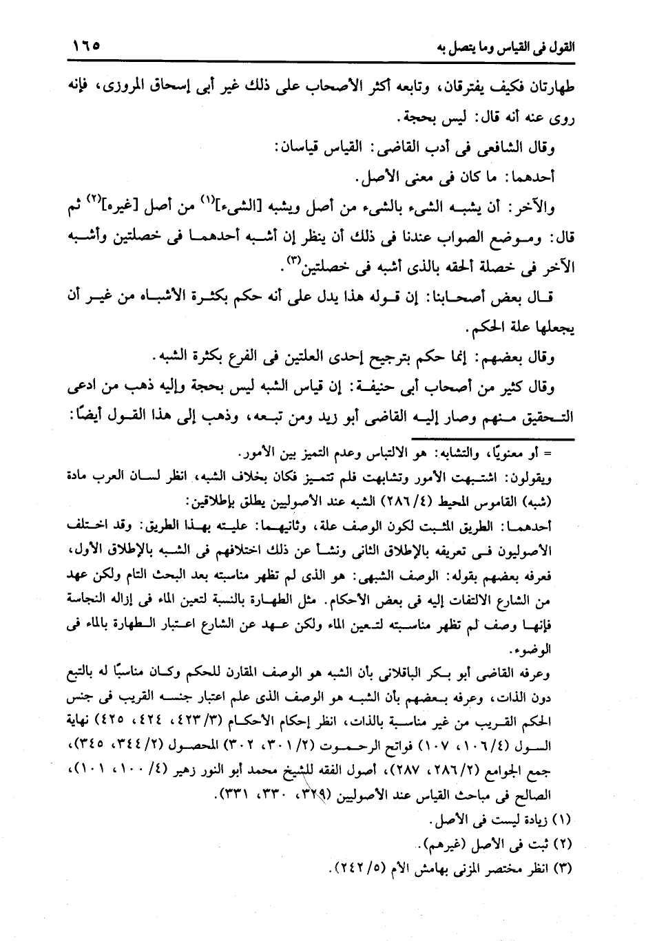 وعرفه القاضي أبو بكر الباقلاني بأن الشبه هو الوصف المقارن للحكم وكان مناسبا له بالتبع دون الذات وعرفه بعضهم بأن الشبه هو الوصف الذي علم اعتبار جنسه القريب في جنس الحكم القريب من غير مناسبة بالذات انظر إحكام الأحكام "/3/423, 424, 425" نهاية السول "4/106, 107" فواتح الرحموت "2/301, 302" المحصول "2/344, 345" جمع الجوامع "2//286, 287" أشول الفقه للشيخ محمد أبو النور زهير "4/100, 101" الصالح في مباحث القياس عند الأصوليين "329, 330, 331".