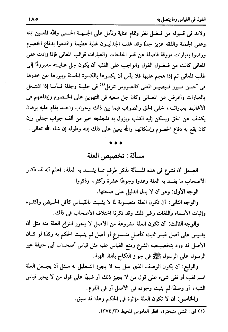 ولابد في قبوله من فضل نظر وتمام عناية وتأمل على الجهة الحسنى والله المعين بمنه وعلى الجملة والفقه عزيز جدا وقد غلب الجدليون غلبة عظيمة واقتنعوا بدفاع الخصوم ورضوا بعبارات مزوقة فاضلة عن قدر الحاجات والعبارات قوالب المعانى فإذا زادت على المعانى كانت من فضول القول والواجب على الفقيه أن يكون جل عنايته مصروفا إلى طلب المعانى ثم إذا هجم عليها فلا بأس أن يكسوها بالكسوة الحسنة ويبرزها عن خدرها في أحسن مبرز فيصير المعنى كالعروس تترفل1 في حلية وجللة فأما إذا اشتغل بالعبارات وأعرض عن المعانى وكان جل سعيه في التهوين على الخصوم وإيقاعهم في الأغاليط بعبارته خفى الحق والصواب فيما بين ذلك وجواب واحد يقام عليه برهان يكشف عن الحق ويسكن إليه القلب ويزول به تلجلجه خير من ألف جواب جدلى وإن كان يقع به دفاع الخصوم وإسكاتهم والله يعين على ذلك بمنه وطوله إن شاء الله تعالى.