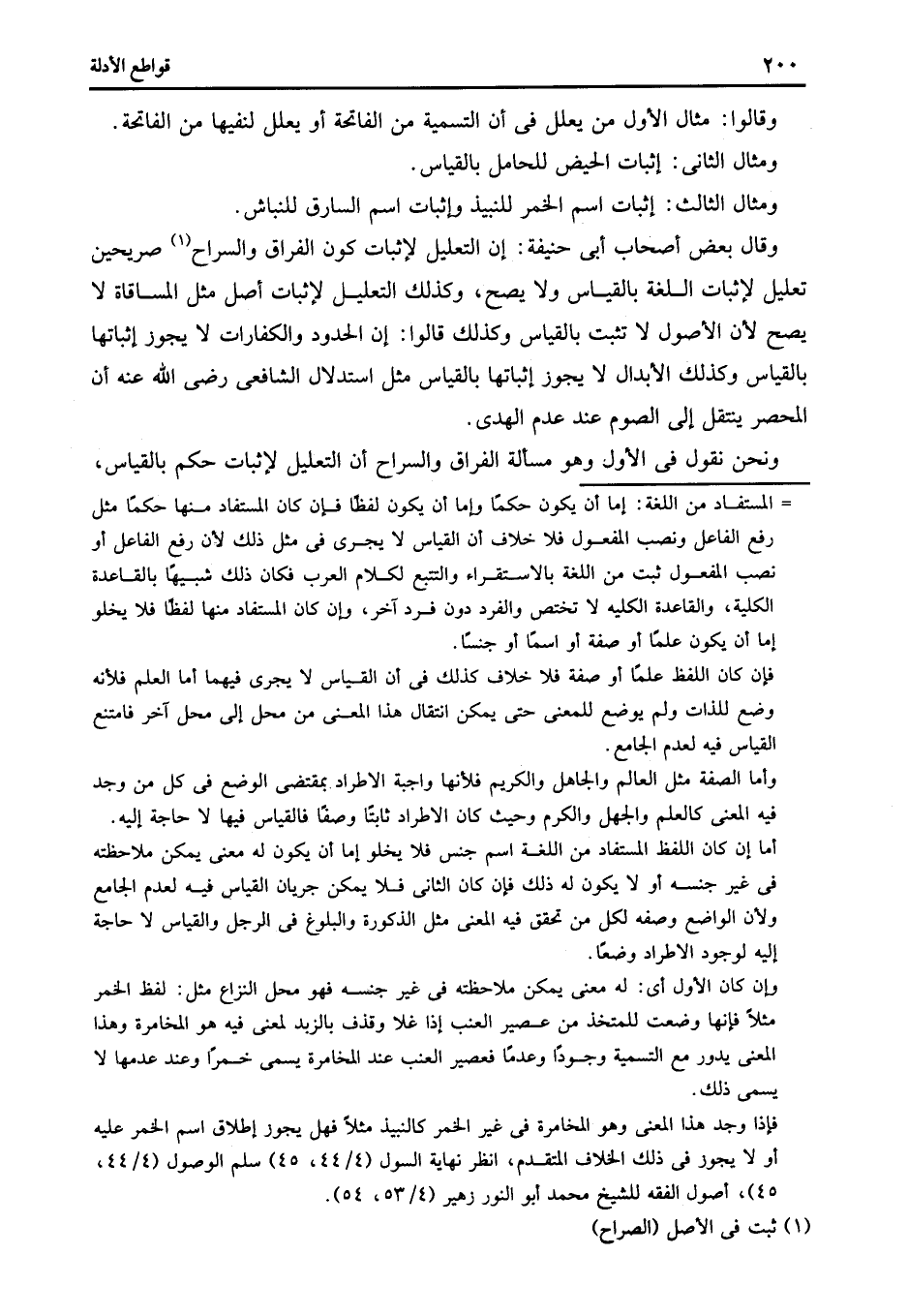 وقال بعض أصحاب أبى حنيفة: إن التعليل لإثبات كون الفراق والسراح1 صريحين تعليل لإثبات اللغة بالقياس ولا يصح وكذلك التعليل لإثبات أصل مثل المساقاة لا يصح لأن الأصول لا تثبت بالقياس وكذلك قالوا: إن الحدود والكفارات لا يجوز إثباتها بالقياس وكذلك الأبدال لا يجوز إثباتها بالقياس مثل استدلال الشافعى رضى الله عنه أن المحصر ينتقل إلى الصوم عند عدم الهدى.