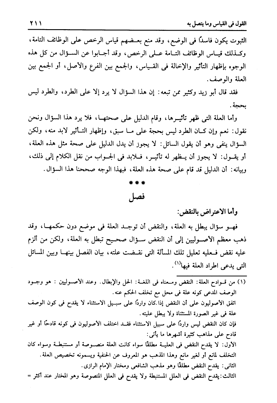 فهو سؤال يبطل به العلة والنقض أن توجد العلة في موضع دون حكمها وقد ذهب معظم الأصوليين إلى أن النقض سؤال صحيح تبطل به العلة ولكن من ألزم عليه نقض فعليه تعليل تلك المسألة التي نقضت علته بيان الفصل بينها وبين المسائل التي يدعى اطراد العلة فيها1.