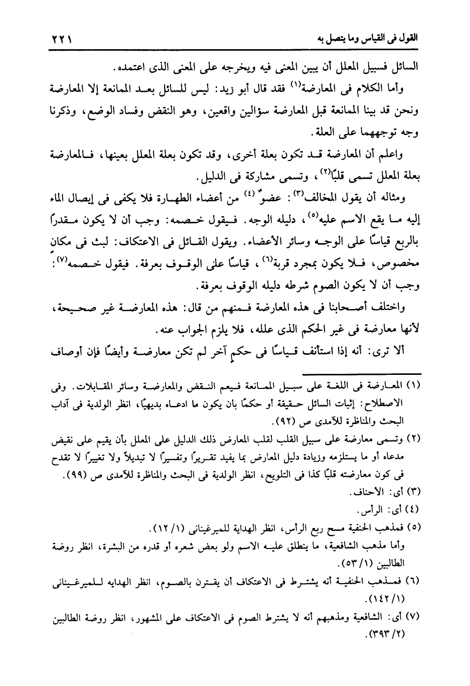 ومثاله أن يقول المخالف3: عضو4 من أعضاء الطهارة فلا يكفى في إيصال الماء إليه ما يقع الاسم عليه5 دليله الوجه. فيقول خصمه: وجب أن لا يكون مقدرا بالربع قياسا على الوجه وسائر الأعضاء. ويقول القائل: في الاعتكاف لبث في مكان مخصوص فلا يكون بمجرد قربة6 قياسا على الوقوف بعرفة فيقول خصمه7: وجب أن لا يكون الصوم شرطه دليله الوقوف بعرفة.