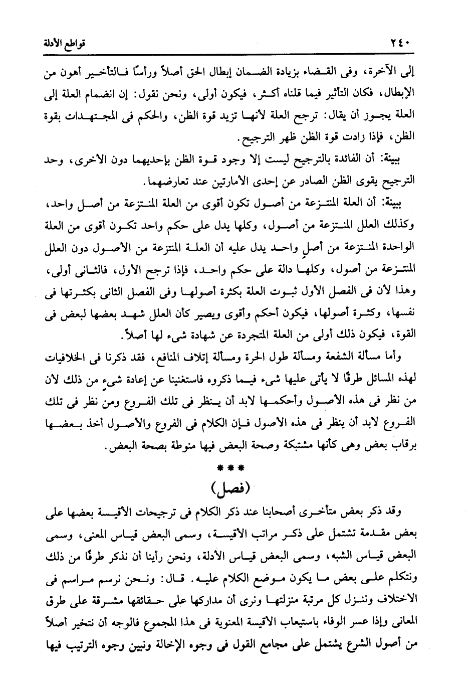 ببينة: أن العلة المنتزعة من أصول تكون أقوى من العلة المنتزعة من أصل واحد وكذلك العلل المنتزعة من أصول وكلها يدل على حكم واحد تكون أقوى من العلة الواحدة المنتزعة من أصل واحد يدل عليه أن العلة المنتزعة من الأصول دون العلل المنتزعة من أصول وكلها دالة على حكم واحد فإذا ترجح الأول فالثانى أولى وهذا لأن في الفصل الأول ثبوت العلة بكثرة أصولها وفى الفصل الثانى بكثرتها في نفسها وكثرة أصولها فيكون أحكم وأقوى ويصير كأن العلل شهد بعضها لبعض في القوة فيكون ذلك أولى من العلة المتجردة عن شهادة شئ لها أصلا.