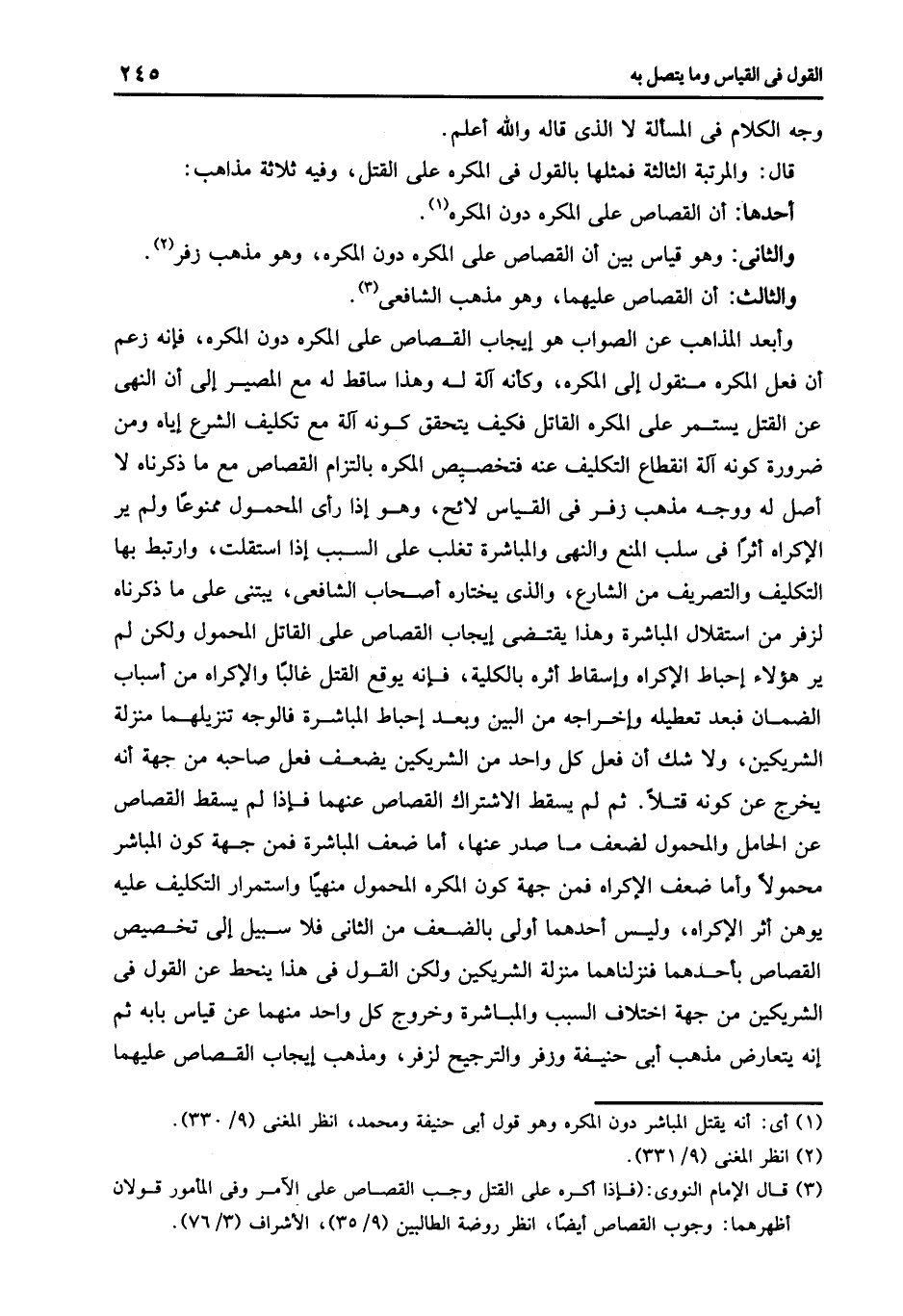 3 قال الإمام النووي: "فإذا أكره على القتل وجب القصاص على الآمر وفي المأمور قولان أظهرهما: وجوب القصاص أيضا انظر روضة الطالبين "9/35" الأشراف "3/76".