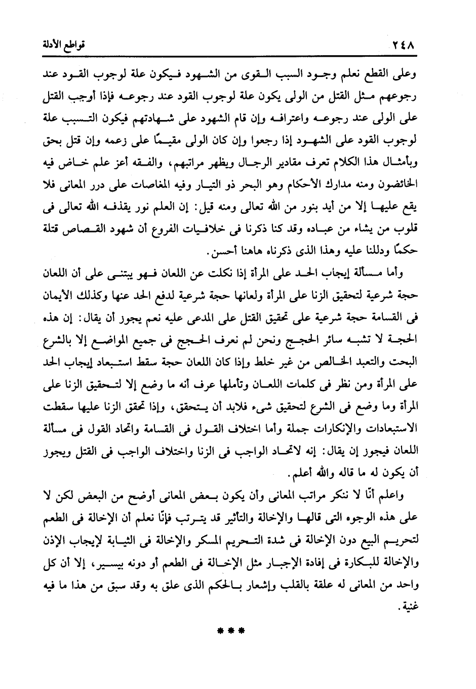وعلى القطع نعلم وجود السبب القوى من الشهود فيكون علة لوجوب القود عند رجوعهم مثل القتل من الولى يكون علة لوجوب القود عند رجوعه فإذا أوجب القتل على الولى عند رجوعه واعترافه وإن قام الشهود على شهادتهم فيكون التسبب علة لوجوب القود على الشهود إذا رجعوا وإن كان الولى مقيما على زعمه وإن قتل بحق وبأمثال هذا الكلام تعرف مقادير الرجال ويظهر مراتبهم والفقه أعز علم خاض فيه الخائضون ومنه مدارك الأحكام وهو البحر ذو التيار وفيه المغاصات على دور المعانى فلا يقع عليها إلا من أيد بنور من الله تعالى ومنه قيل: إن العلم نور يقذفه الله تعالى في قلوب من يشاء من عباده وقد كنا ذكرنا في خلافيات الفروع أن شهود القصاص قتله حكما ودللنا عليه وهذا الذى ذكرناه هاهنا أحسن.