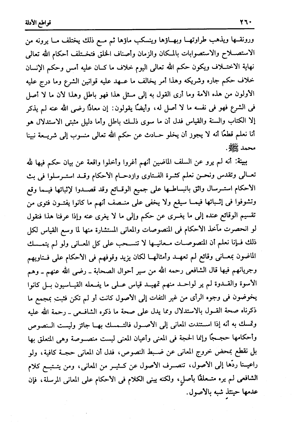 ورونقها ويذهب طراوتها وبهاؤها وينسكب ماؤها ثم مع ذلك يختلف ما يرونه من الاستصلاح والاستصوابات بالمكان والزمان وأصناف الخلق فتختلف أحكام الله تعالى نهاية الاختلاف ويكون حكم الله تعالى اليوم خلاف ما كان عليه أمس وحكم الإنسان خلاف حكم جاره وشريكه وهذا أمر يخالف ما عهد عليه قوانين الشرع وما درج عليه الأولون من هذه الأمة وما أرى القول به إلى مثل هذا فهو باطل وهذا لأن ما لا أصل في الشرع فهو في نفسه ما لا أصل له وأيضا يقولون إن معاذا رضى الله عنه لم يذكر إلا الكتاب والسنة والقياس فدل أن ما سوى ذلك باطل وأما دليل مثبتى الاستدلال هو أنا نعلم قطعا أنه لا يجوز أن يخلو حادث عن حكم الله تعالى منسوب إلى شريعة نبينا محمد صلى الله عليه وسلم.
