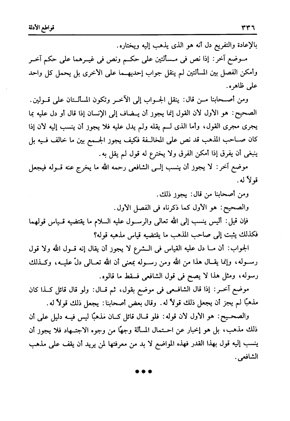 الجواب: أن ما دل عليه القياس في الشرع لا يجوز أن يقال إنه قول الله ولا قول رسوله وإنما يقال هذا من الله ومن رسوله بمعنى أن الله تعالى دل عليه وكذلك رسوله ومثل هذا لا يصح في قول الشافعى فسقط ما قالوه.