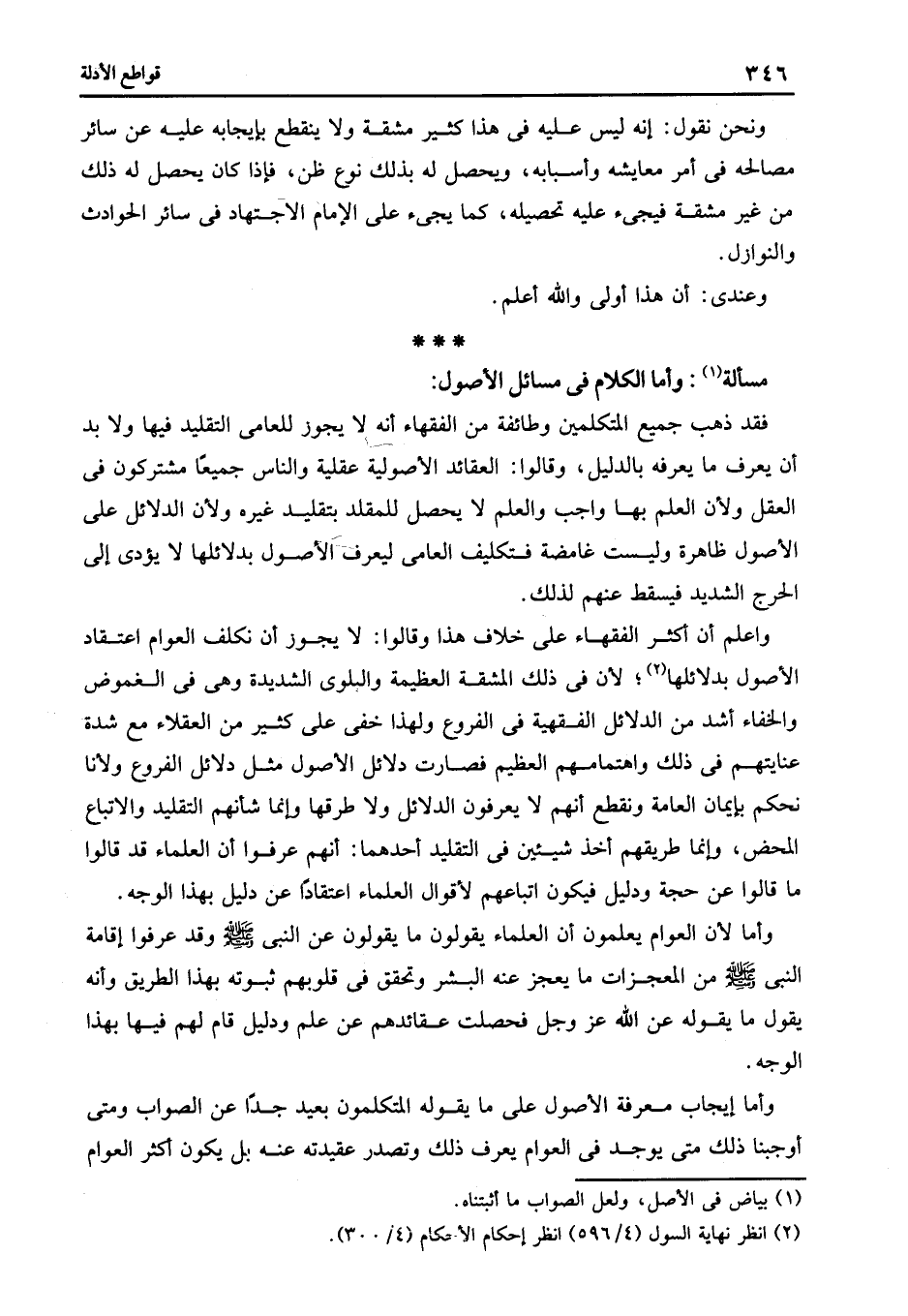 مسألة1: وأما الكلام في مسائل الأصول: