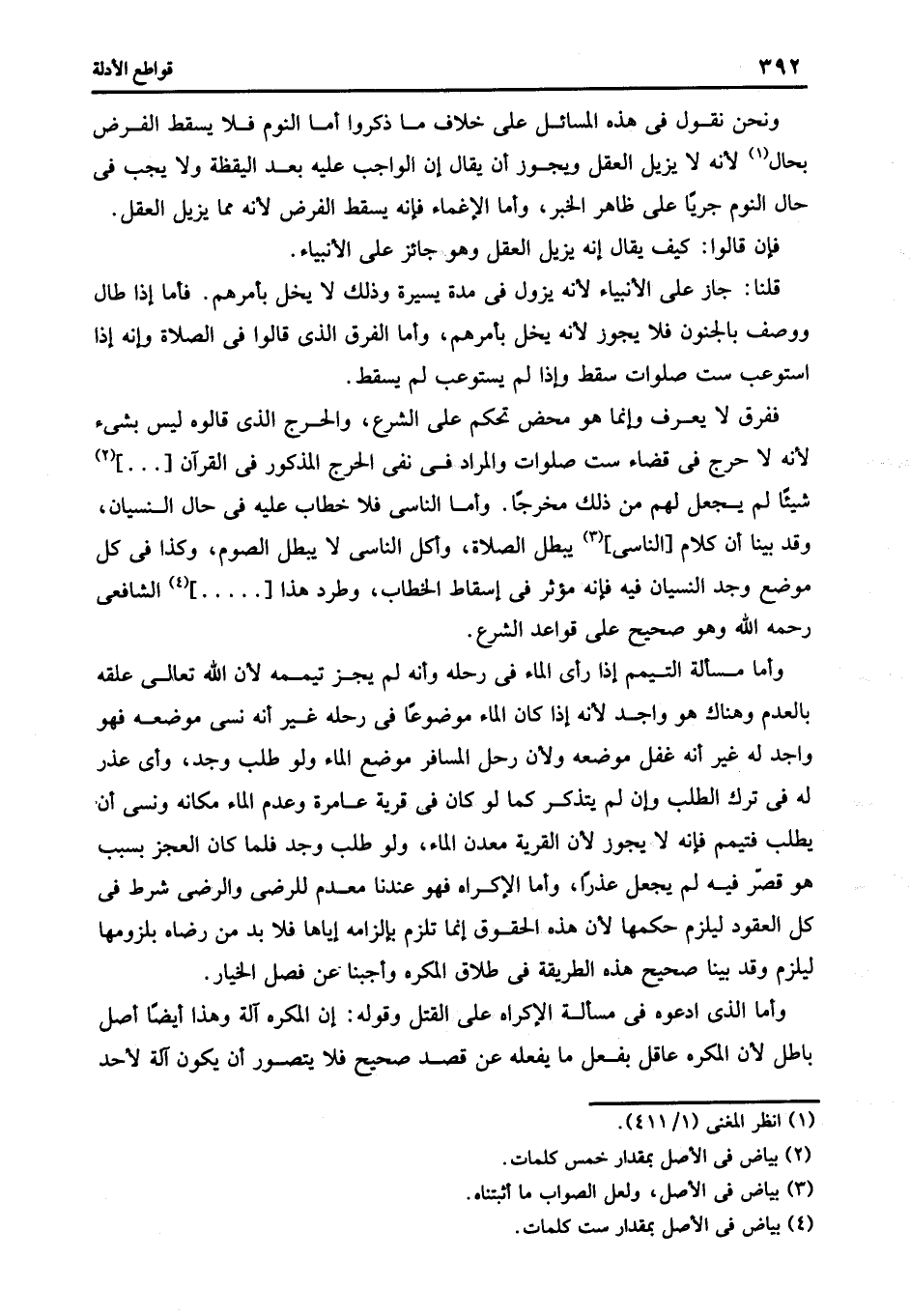 ففرق لا يعرف وإنما هو محض تحكم على الشرع والحرج الذى قالوه ليس بشئ لأنه لا حرج في قضاء ست صلوات والمراد في نفى المذكور في القرآن [ ... ] 2 شيئا لم يجعل لهم من ذلك مخرجا.