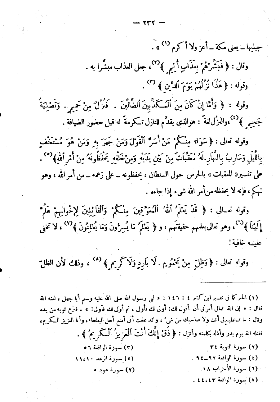 وَقَوْلُهُ تَعَالَى: {سَوَاءٌ مِنْكُمْ مَنْ أَسَرَّ الْقَوْلَ وَمَنْ جَهَرَ بِهِ وَمَنْ هُوَ مُسْتَخْفٍ بِاللَّيْلِ وَسَارِبٌ بِالنَّهَارِ. لَهُ مُعَقِّبَاتٌ مِنْ بَيْنِ يَدَيْهِ وَمِنْ خَلْفِهِ يَحْفَظُونَهُ من أمر الله} عَلَى تَفْسِيرِ الْمُعَقِّبَاتِ بِالْحَرَسِ حَوْلَ السُّلْطَانِ يَحْفَظُونَهُ -عَلَى زَعْمِهِ- مِنْ أَمْرِ اللَّهِ وَهُوَ تَهَكُّمٌ فَإِنَّهُ لَا يَحْفَظُهُ مِنْ أَمْرِ اللَّهِ إِذَا جَاءَهُ