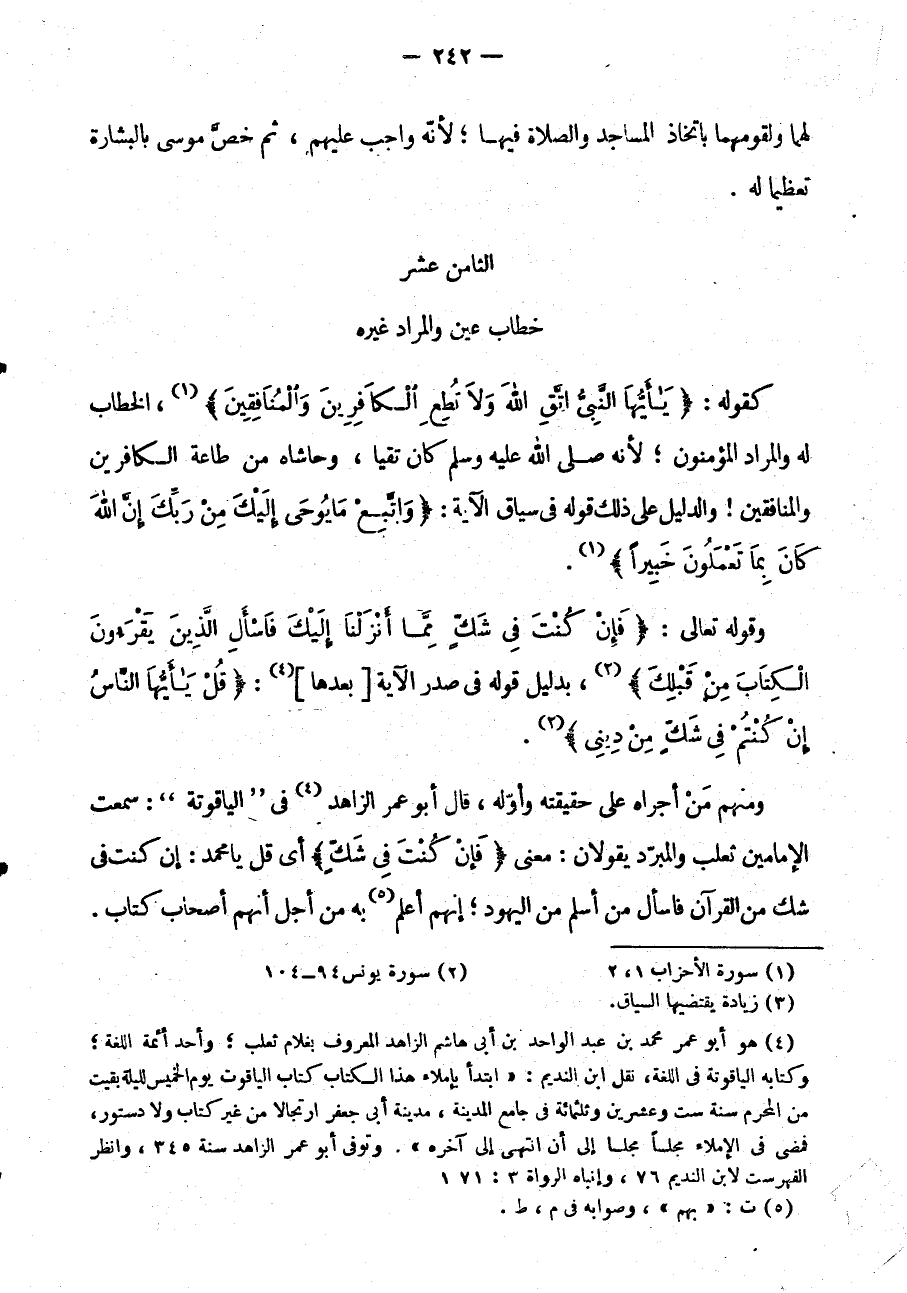 الثَّامِنَ عَشَرَ: خِطَابُ عَيْنٍ وَالْمُرَادُ غَيْرُهُ
