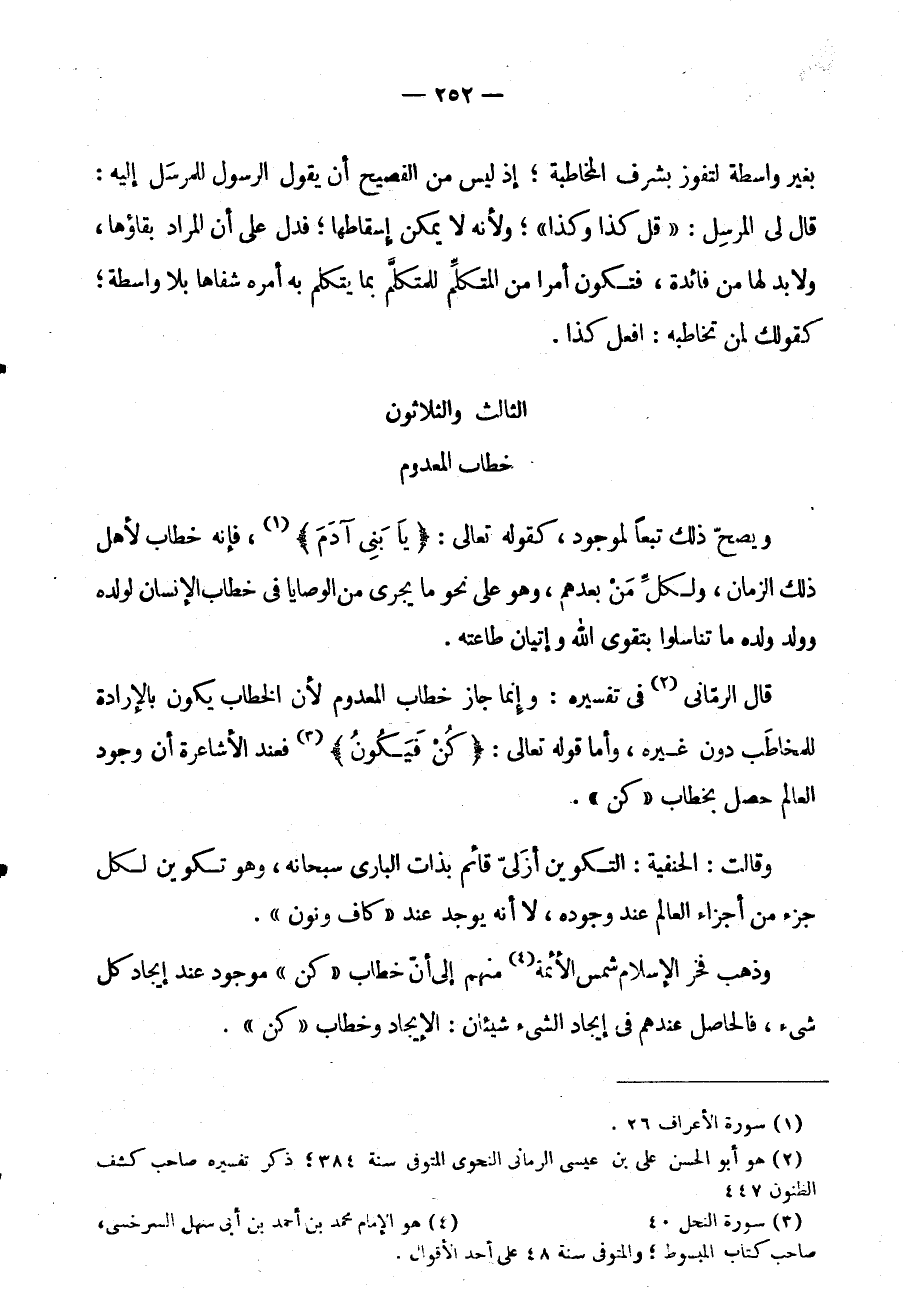 الثَّالِثُ وَالثَّلَاثُونَ: خِطَابُ الْمَعْدُومِ